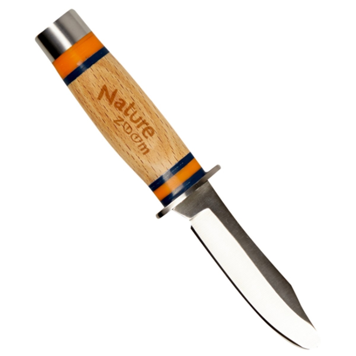 Abgerundete Klinge aus rostfreiem Edelstahl mit Holzgriff. Zum sicheren Transport dient das Nylonetui mit Gürtelschlaufe.