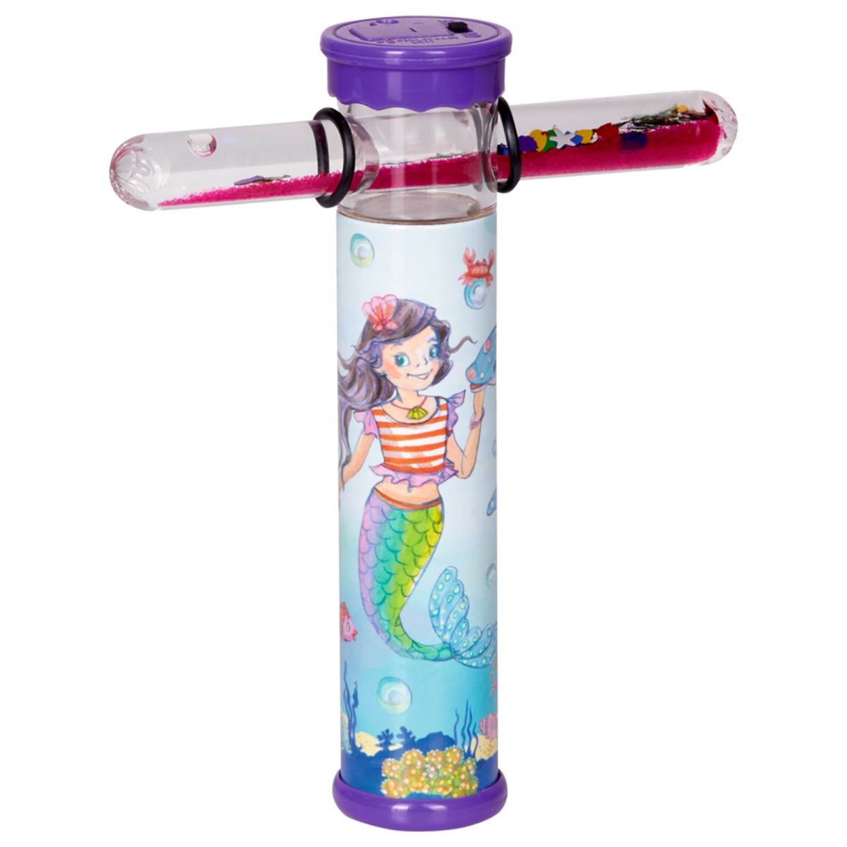 Zauber-Kaleidoskop von Nella Nixe mit magischen Funktionen. Einfach das Röhrchen mit dem farbigem Sand und den bunten Meeresfiguren in das Kaleidoskop einschieben, mit den Gummiringen fixieren, Lampe einschalten, durch die Linse schauen und in eine zauberhafte Unterwasserwelt "abtauchen".