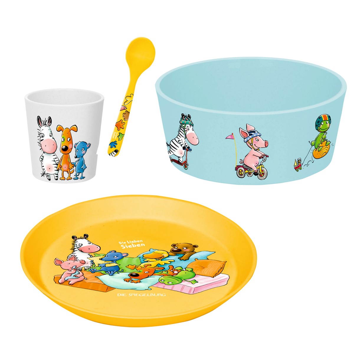 Tolles 4-teiliges Geschirrset ist aus hochwertigem PP-Kunststoff mit den Lieben Sieben.