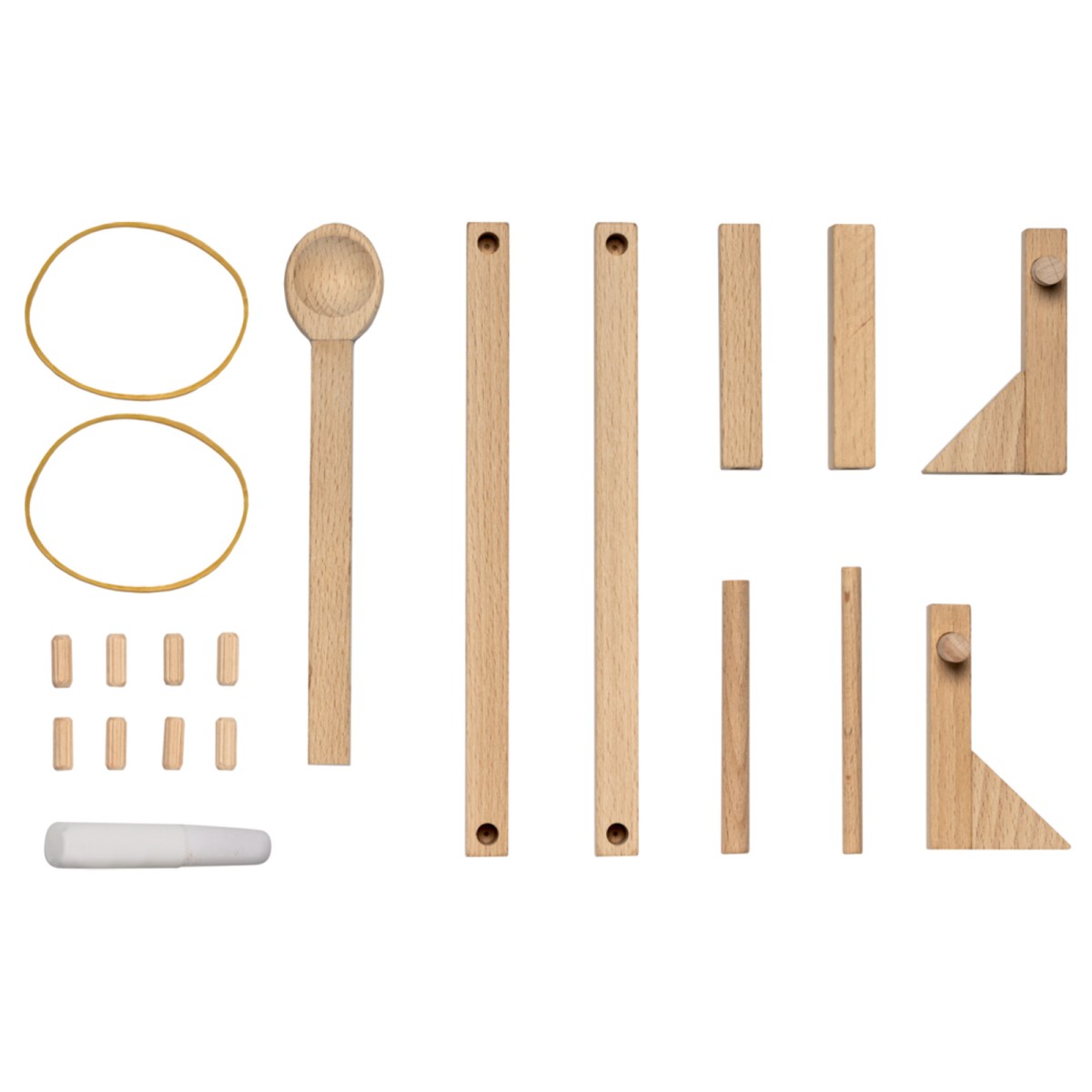 Mit diesem Holz-Bausatz können sich kleine Abenteurer*innen ein cooles Katapult bauen.