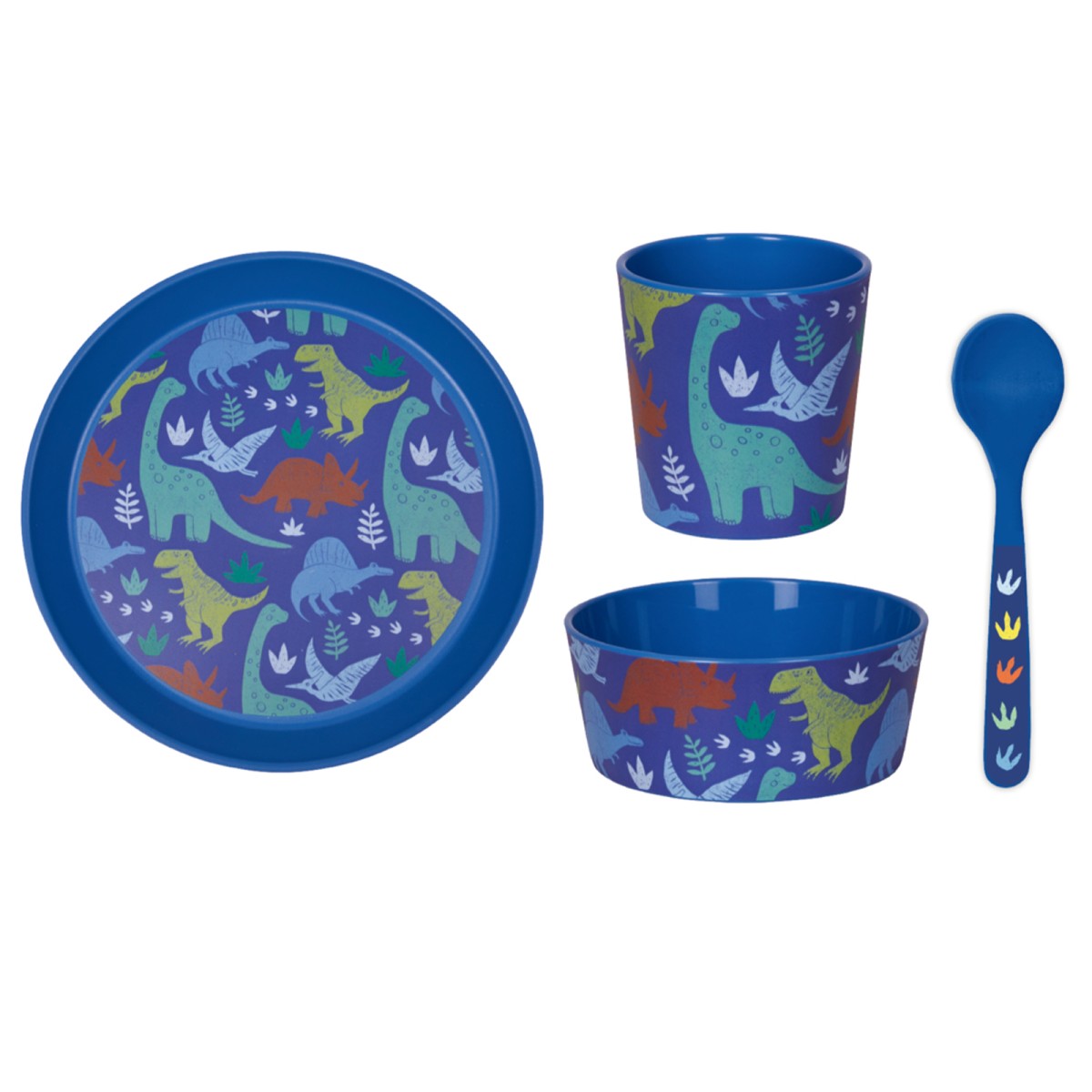 Tolles 4-teiliges Geschirrset ist aus hochwertigem PP-Kunststoff mit Dino-Design.