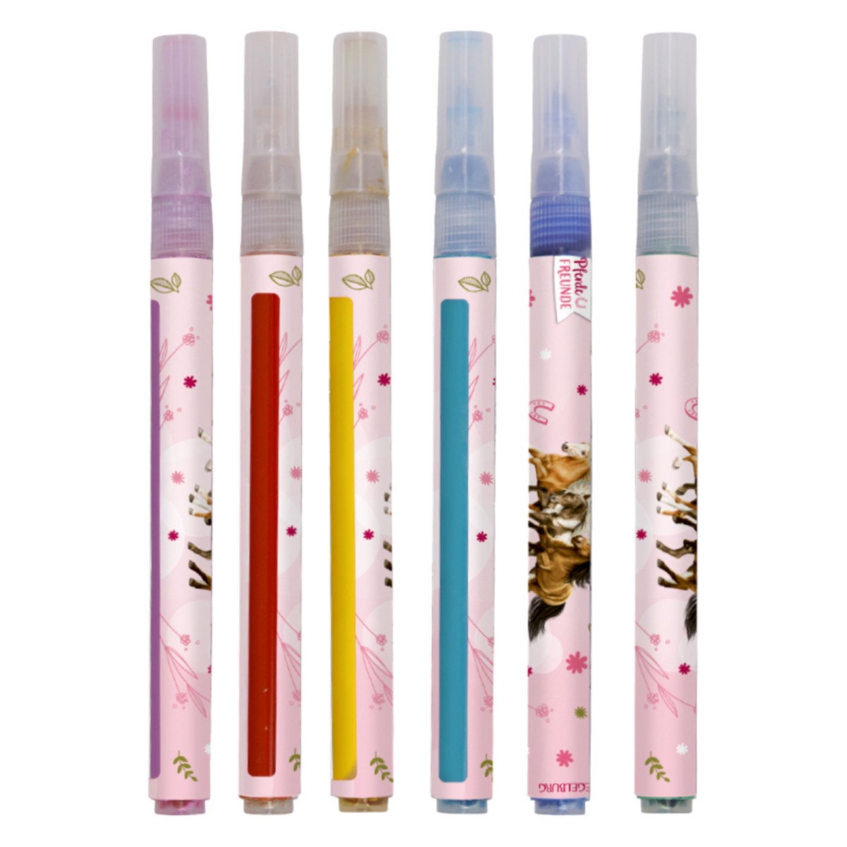 In diesem Set sind sechs Farben enthalten: Gelb, Orange, Grün, Pink, Blau und Türkis. Egal ob Schriftzug oder tolle Zeichnung von Pferden, Einhörnern und mehr - mit diesen Stiften wird jedes Bild zum Hit!