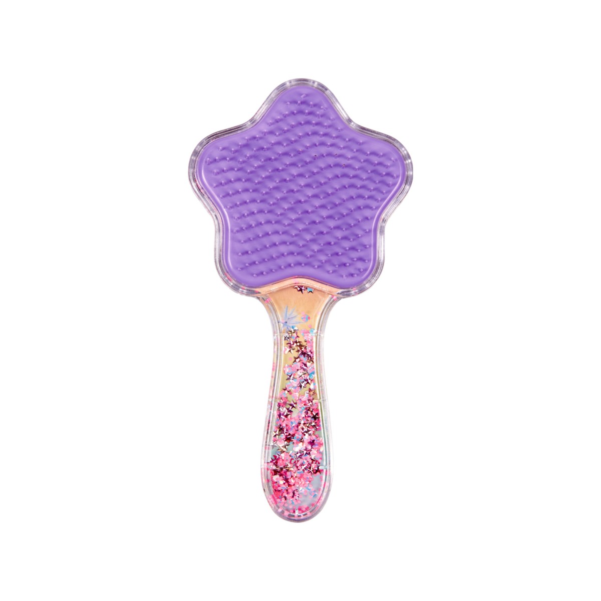 Diese sternförmige Haarbürste mit beweglichen Glitzer-Pailetten macht das nächste Haarekämmen zum Kinderspiel.