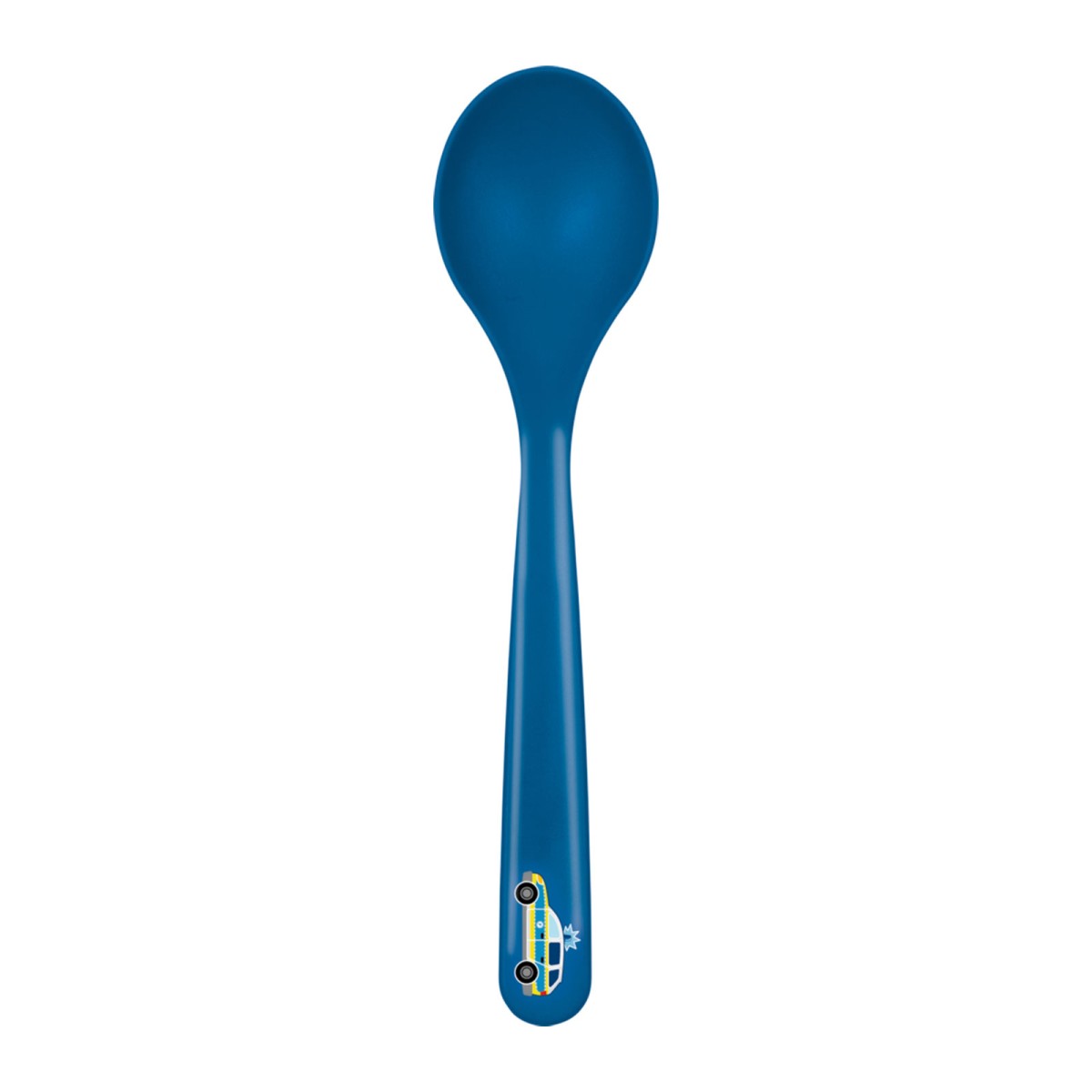 Mit jedem Haps vom hochwertigen Kunststoff-Löffel, sieht man das Polizeiauto.