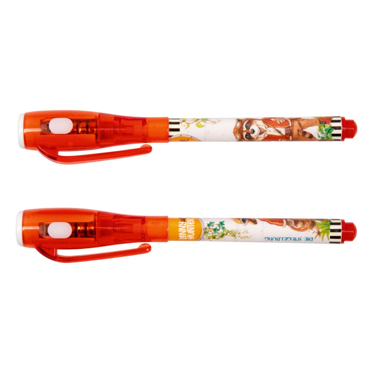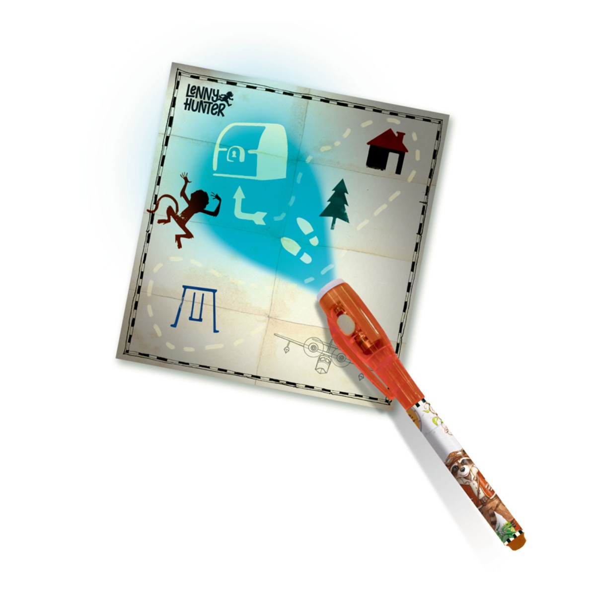 Das Set besteht aus 2 Geheimschrift-Stiften, 6 Schatzkarten und 2 Schablonen. Mit den speziellen Geheimschrift-Stiften können unsichtbare Dinge aufgemalt werden, welche erst sichtbar werden, wenn sie mit dem in der Stiftkappe integrierten UV-Licht beleuchtet wird. So können Kinder wie echte Detektive Geheimbotschaften erstellen und enthüllen.