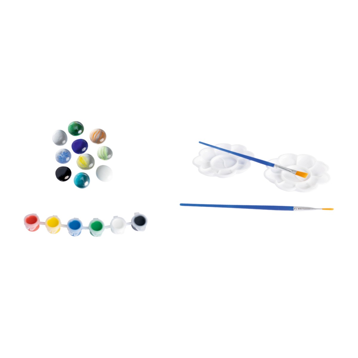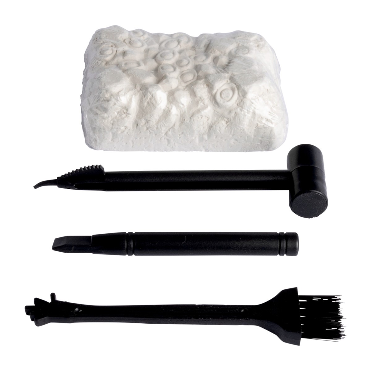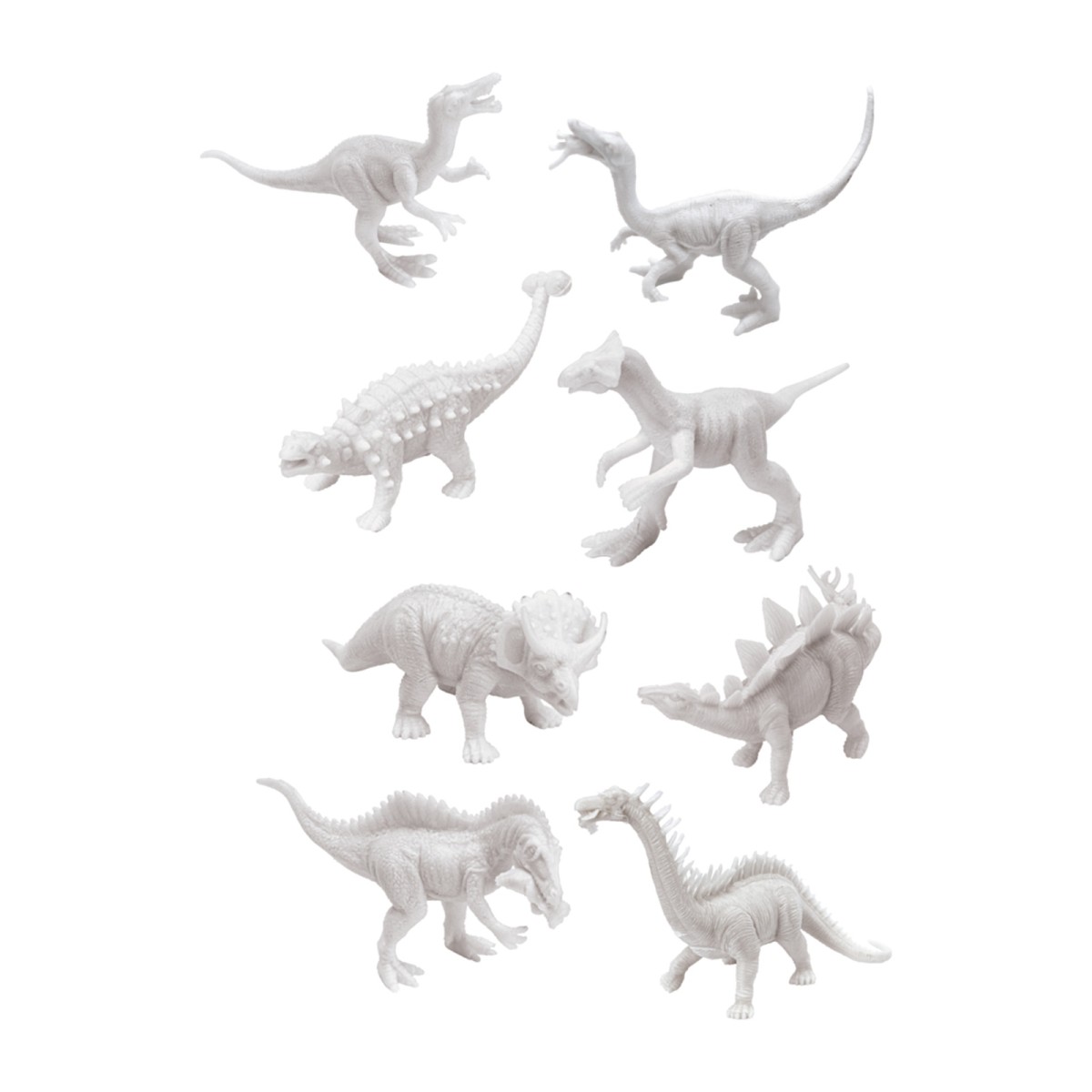 8 Dinos, 2 Ausgrabungsblöcke, Ausgrabungswerkzeug, 2 Farbpaletten, 2 Pinsel, 6x 5ml Farbe, 1 Koffer