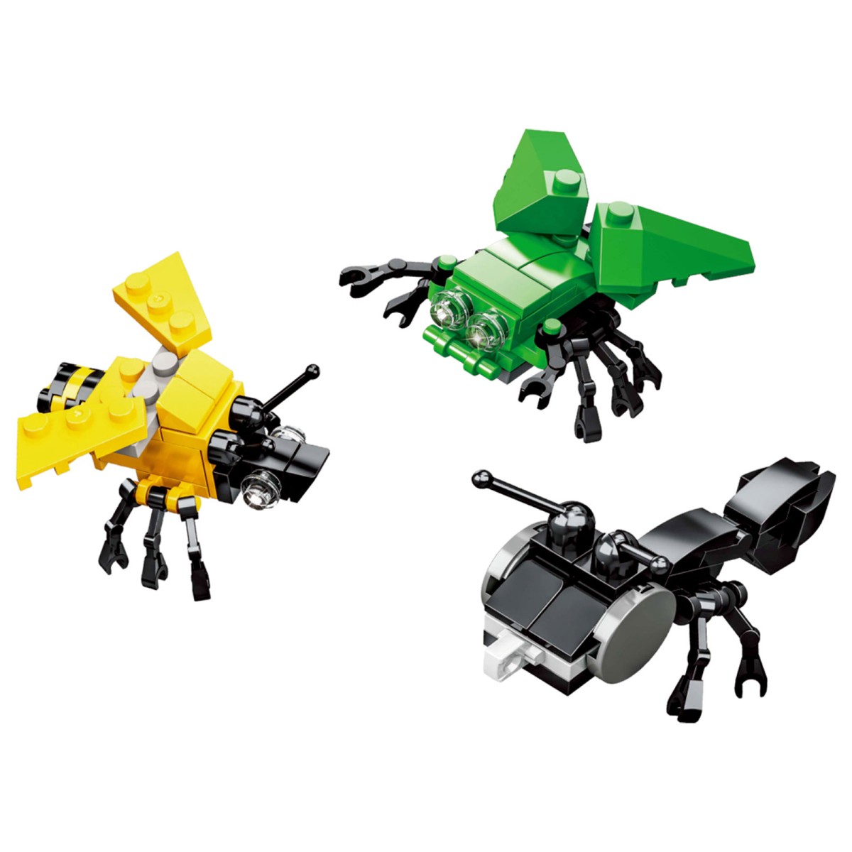 Der Bausatz enthält drei verschiedene Insektendesigns: Biene, Käfer und Ameise. Jedes Insekt hat seine eigenen Maße: Die Biene misst ca. 6,5 x 4,5 x 7 cm, der Käfer ca. 6 x 7,5 x 3,5 cm und die Ameise ca. 4 x 8 x 5 cm. Diese detaillierten Modelle ermöglichen es Kindern, die verschiedenen Merkmale und Eigenschaften von Insekten zu entdecken.