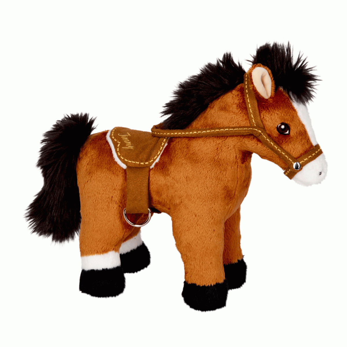Das kuschelweiche Plüschpferd Jimmy ist zum Schmusen und Spielen da. Das große Plüschtier bietet dank Halfter und abnehmbarem Sattel extra großen Spielspaß für kleine und große Pferdefreunde. Mit hochwertig gestickten Augen für realistische Rollenspiele.