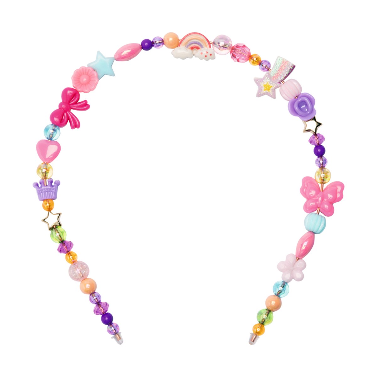 Das Set besteht aus ca. 480 kunterbunten Perlen in einer praktischen Sortierbox und 5 Haarreifen-Rohlingen. So entstehen im Handumdrehen magische Kunstwerke für vielfältige Frisuren.