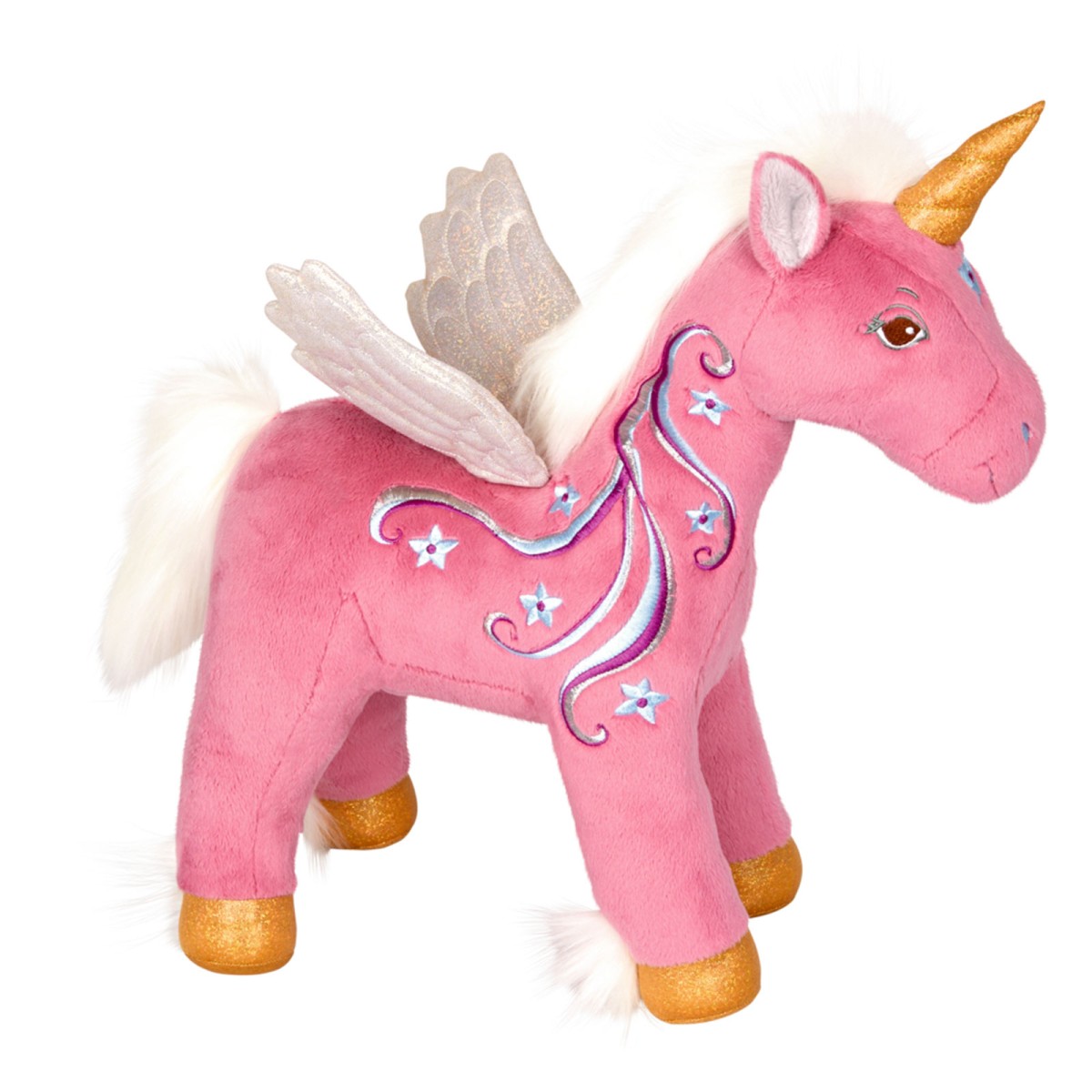 Zum Spielen, Kuscheln und Liebhaben: Das zauberhafte Plüsch-Einhorn ist der perfekte Begleiter für kuschelige Stunden. Mit glitzerndem Horn und weißen Flügeln.