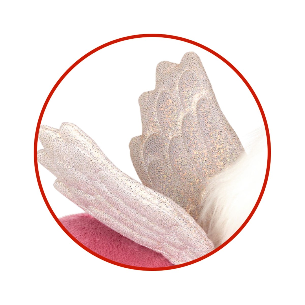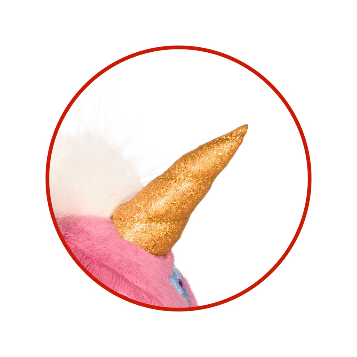 - Mit glitzerndem Horn und weißen Flügeln.
