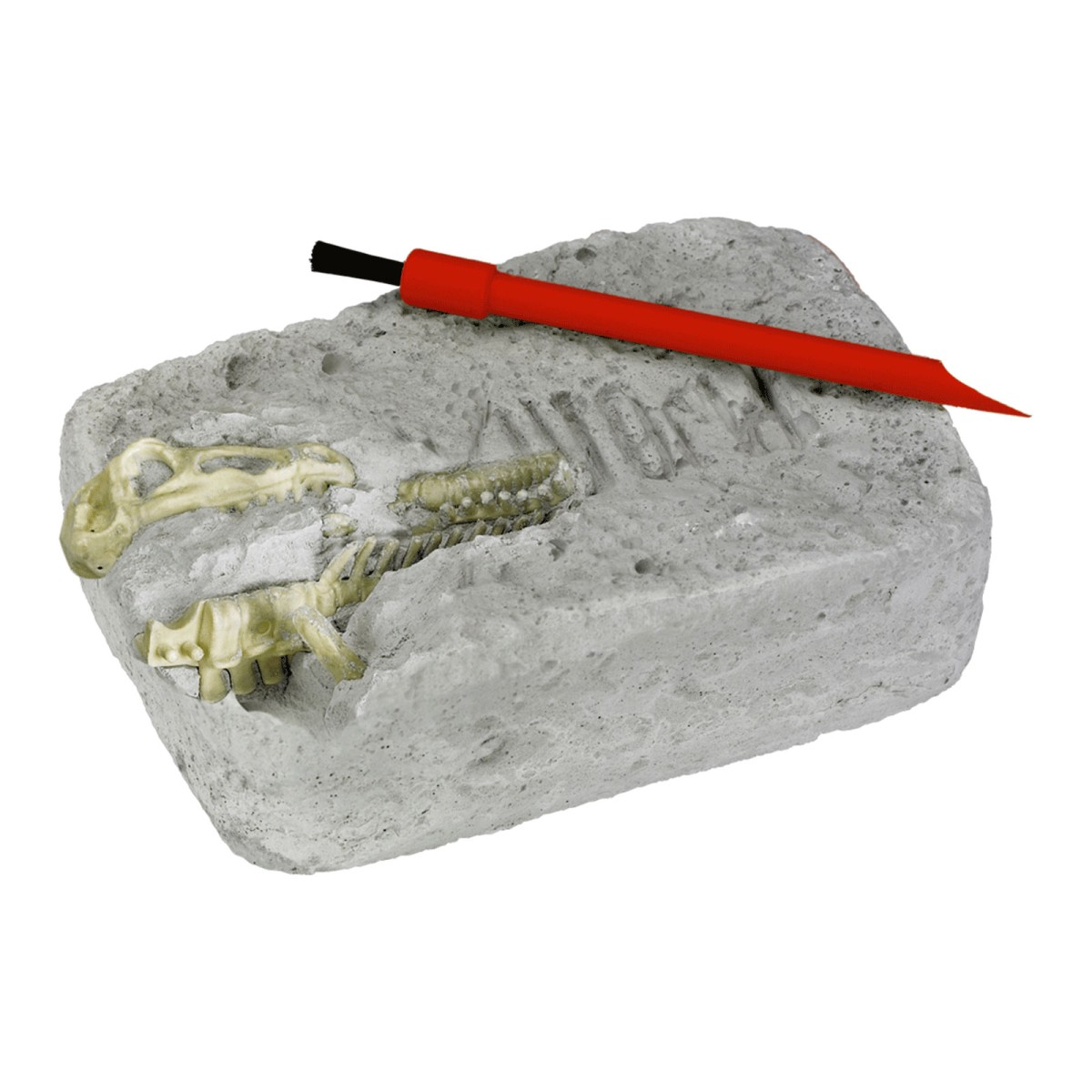 Stück für Stück werden mit dem beiliegenden Spatel und Pinsel die Einzelteile des Dinosauriers ans Tageslicht befördert – das erfordert nicht nur die Geduld und Aufmerksamkeit junger Forscher, sondern bietet auch eine hervorragende Gelegenheit, feinmotorische Fähigkeiten ganz spielerisch zu fördern.