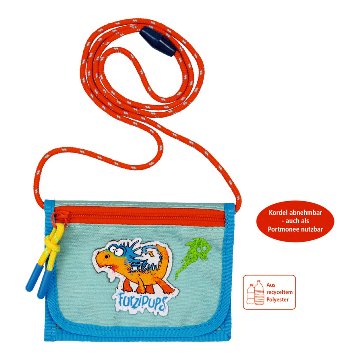 Praktischer Brustbeutel mit Applikation, liebevoller Stickerei und einem Klarsichtfach für die Busfahrtkarte auf der Rückseite. Mit lustigem Motiv von Furzipups, dem Knatterdrachen und einer abnehmbaren Kordel. So kann der Brustbeutel nicht nur sicher um den Hals getragen werden, sondern auch als Portmonee genutzt werden.