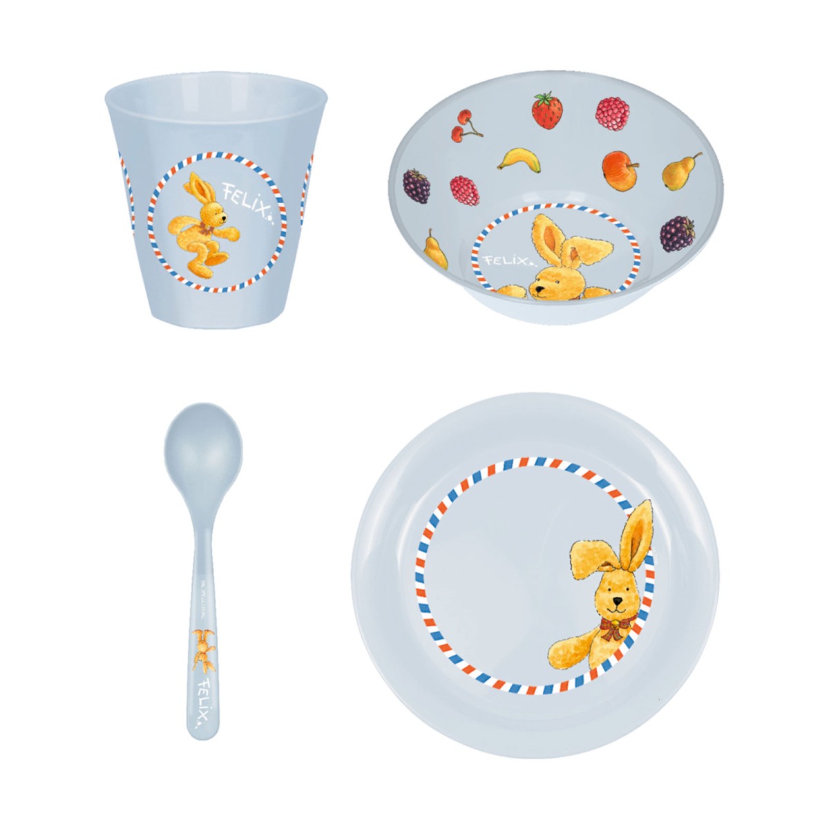 Tolles 4-teiliges Geschirrset ist aus BPA freien Kunststoff im Felix Design.