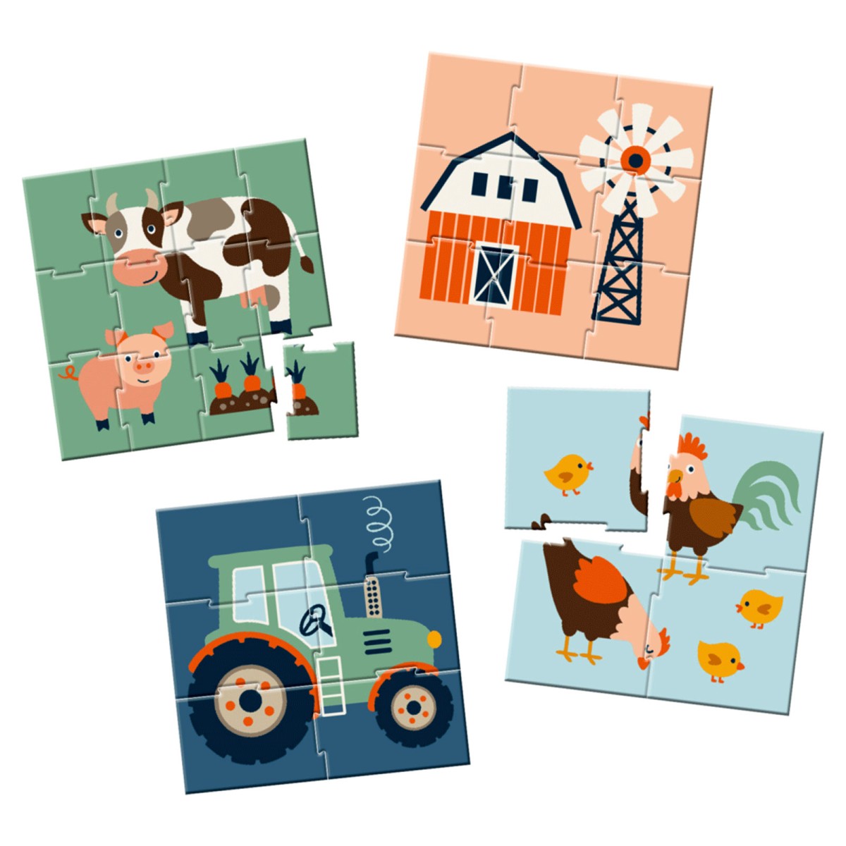 4 Puzzles mit je 4, 6, 9 und 12 Teilen