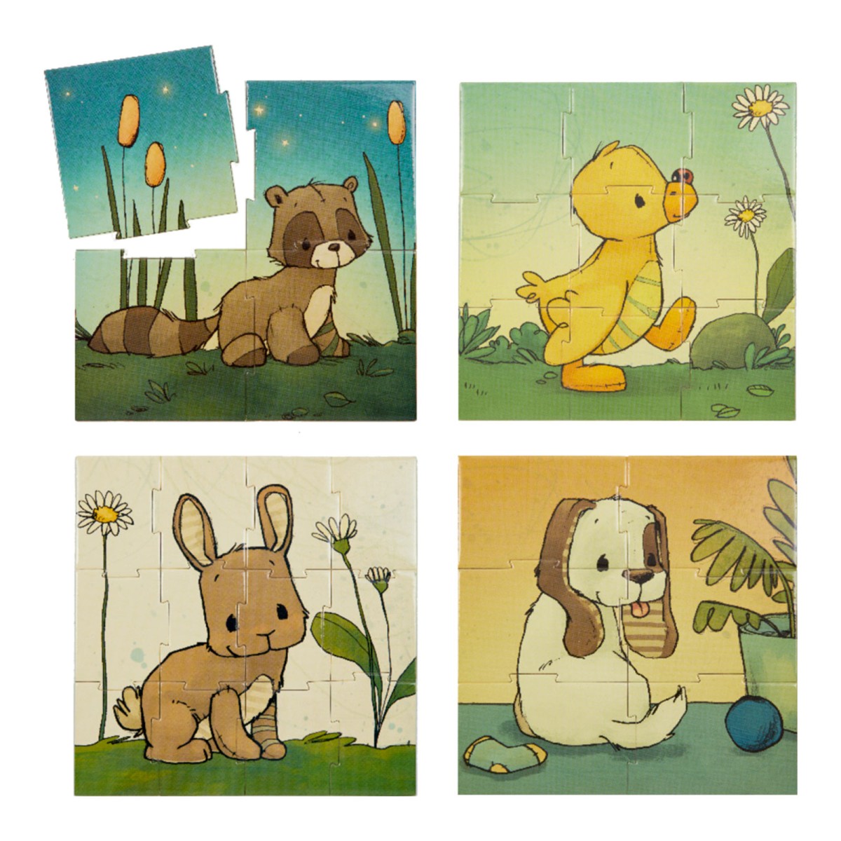 - 4 Puzzles mit je 4, 6, 9 und 12 Teilen