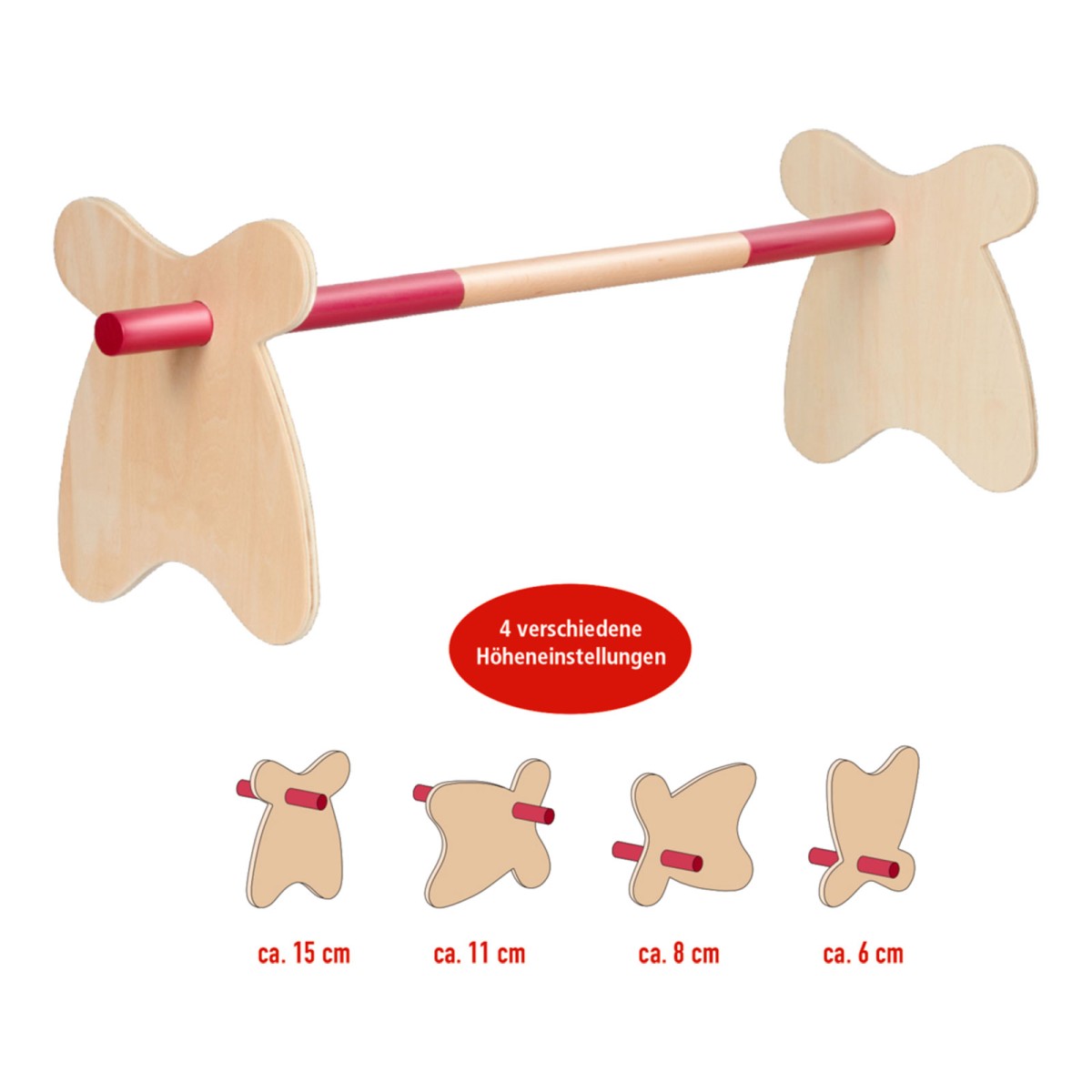 Im Galopp geht es über das Hindernis! Ganz einfach aufgebaut, bietet die Hürde 4 unterschiedliche Schwierigkeitsstufen, je nachdem, wie die Seitenteile aufgestellt werden. Ein sportlicher Spaß, der Motorik und Koordination schult.