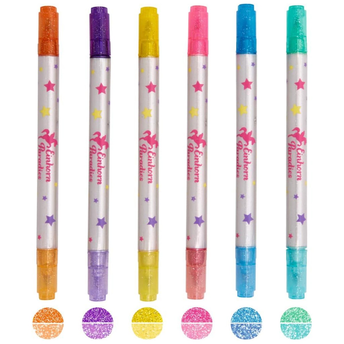 Das 6er-Set Doppelfasermaler bietet leuchtende Farben mit Glitzer-Effekt und sorgt für kreative Highlights. Jede Stiftspitze hat zwei verschiedene Farben, sodass abwechslungsreiche Kunstwerke entstehen können.