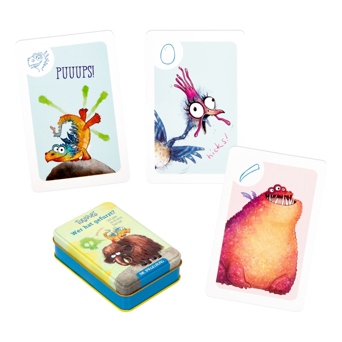 Das Set enthält 35 Karten und eine Anleitung, sicher verpackt in einer hochwertigen Blechdose mit Prägung – ideal zum Mitnehmen und für unterwegs. Und am Ende bleibt die Frage: „Wer hat gefurzt?“