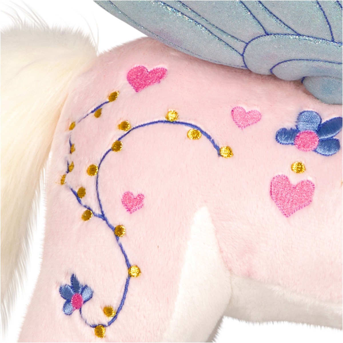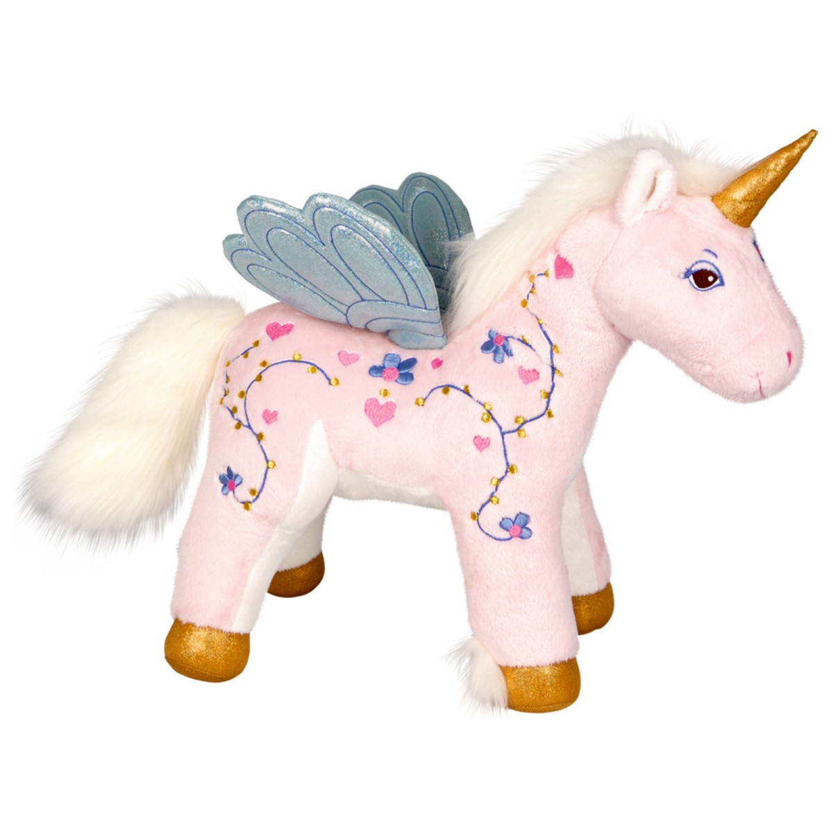 Berry, das große Einhorn, besticht durch sein niedliches Design und seine liebevollen Details. Mit seinem weichen Plüschmaterial ist es perfekt zum Kuscheln und Schmusen geeignet. Das glitzernde Horn und Hufe, sowie die glänzenden Flügel machen Ella zu einem echten Hingucker und bringen einen Hauch von Magie ins Kinderzimmer.