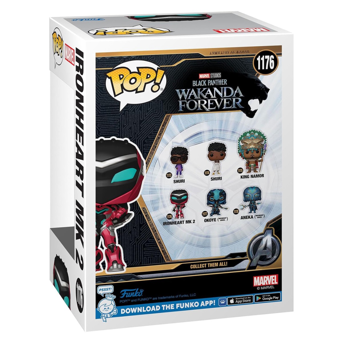 Die Funko 1176 - Marvel – POP! - Black Panther – Wakanda Forever – Ironheart MK 2 Figur ist ein absolutes Muss für Fans von „Black Panther“ und Sammler von Funko Pop! Figuren. Ob Sie sie in Ihrer Sammlervitrine, auf Ihrem Schreibtisch oder in Ihrer Sammlung präsentieren, Ironheart MK 2 wird zweifellos die Aufmerksamkeit auf sich ziehen und Ihre Begeisterung für die Heldentaten von Wakanda und die zukünftige Generation von Superhelden unterstreichen.