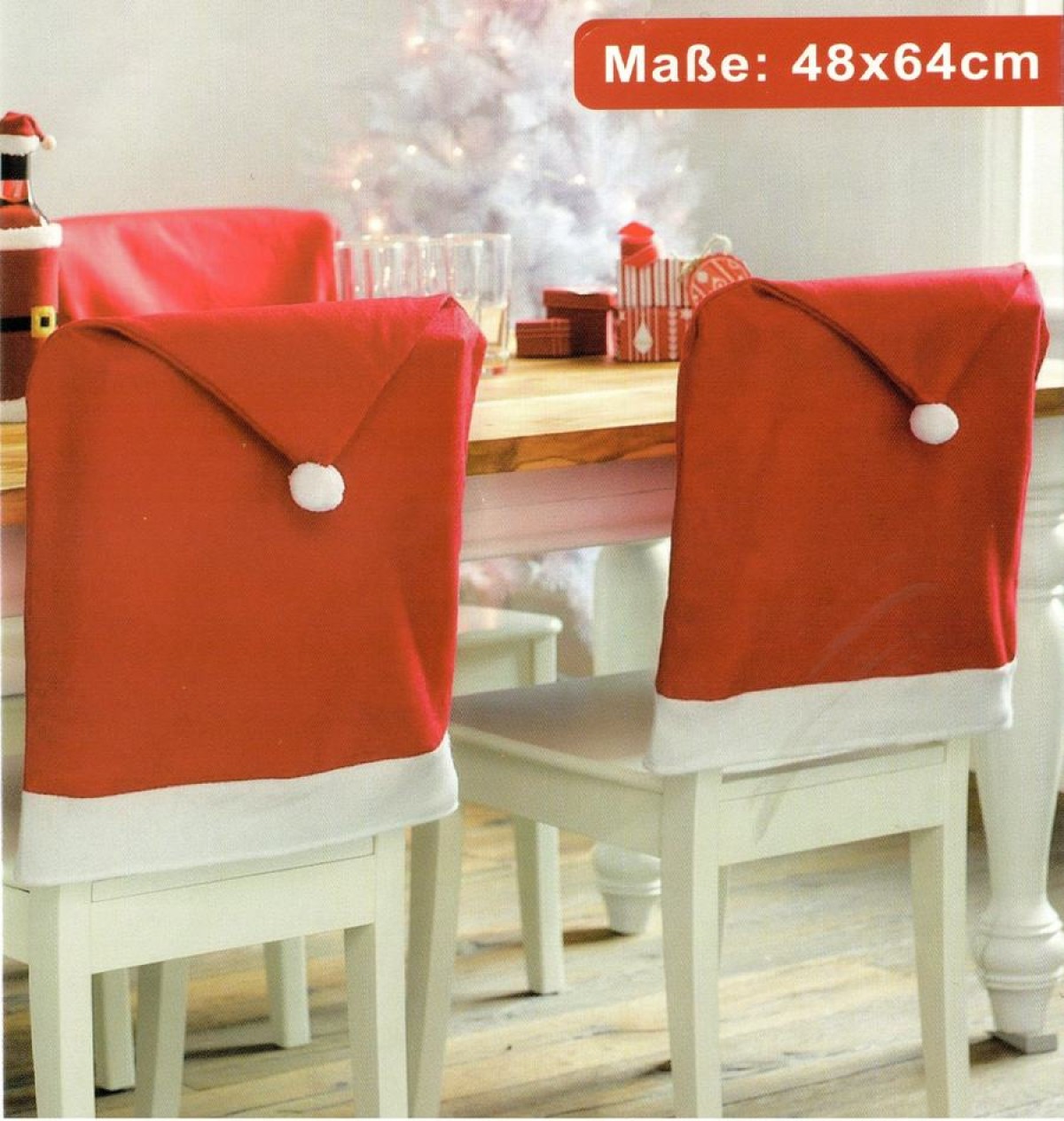 Passend zu Weihnachten oder Nikolaus verleihen Sie mit diesen Stuhlhussen ihren Stühlen einen festlichen Look. Die Stuhlhusse hat folgende Maße: Breite 48cm x Länge 64cm.