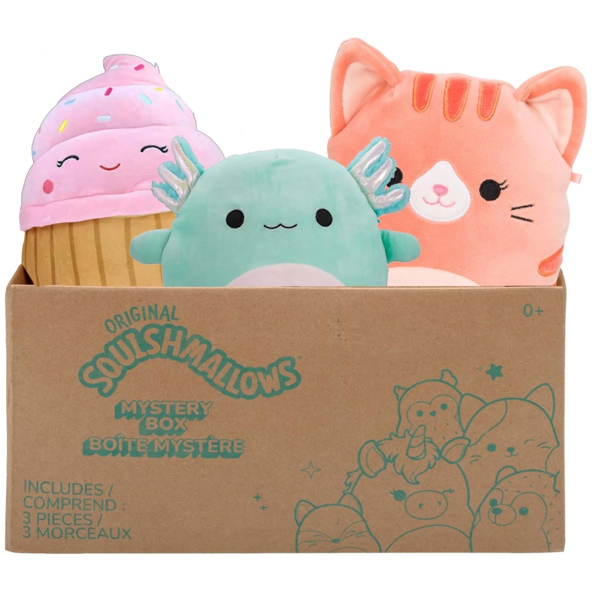 Jazwares SQCR04665 sort. 2.Wahl - Squishmallows - Mystery Box mit 3 Überraschungs-Plüschfiguren, je 20 cm