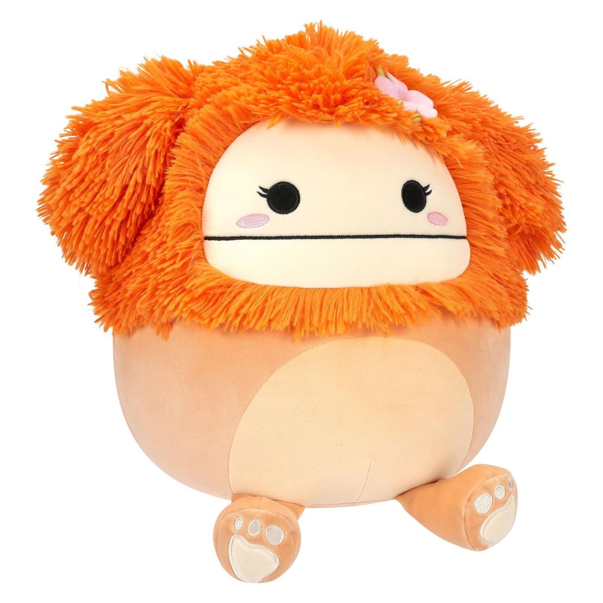Shasta präsentiert sich in einem sanften Beigeton, mit einem leuchtend orangefarbenen Haarschopf und einem pinken Blumensticker auf dem Kopf. Der runde Körper und das freundliche Gesicht mit gestickten Augen und einem kleinen Lächeln verleihen ihr einen charmanten Ausdruck. Die detailreiche Gestaltung macht diese Squishmallow-Figur zu einem besonderen Highlight für Fans der Reihe.