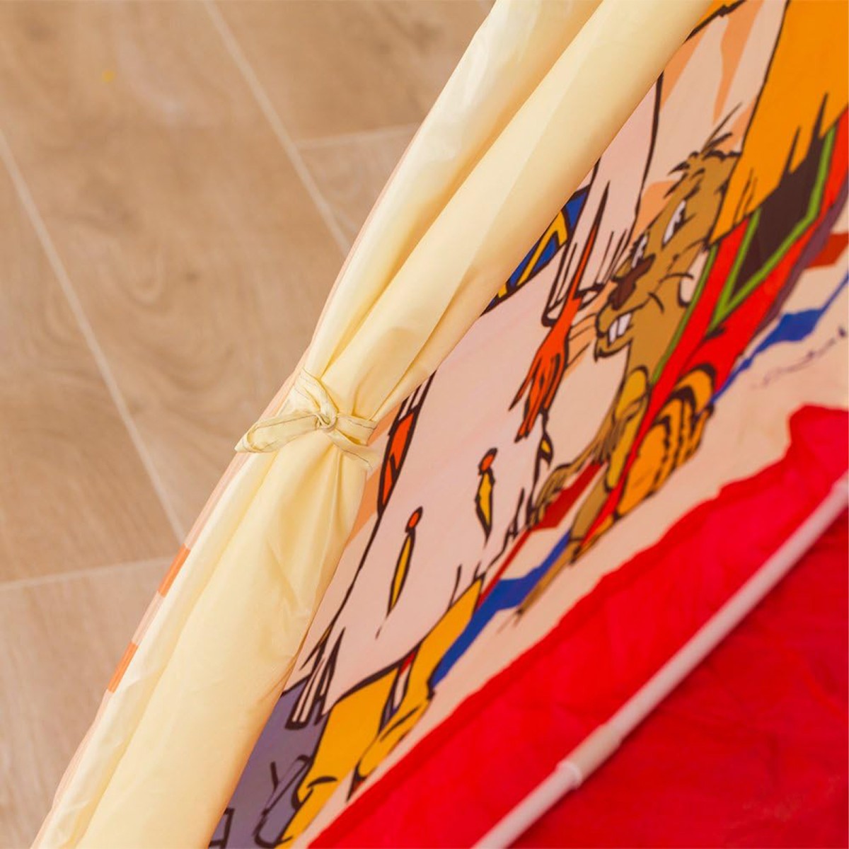 Erlebe aufregende Abenteuer mit Yakari und seiner Indianer-Freundin Regenbogen und tauche in die spannende Welt der beliebten Comicreihe ein. Die Tür kann an den Stangen festgebunden werden, damit diese dauerhaft offenbleibt. Alle für den Aufbau benötigten Stangen sind enthalten, somit ist das Tipi in kürzester Zeit bereit zum Spielen. Die einzelnen Stangenteile sind mit Gummibändern verbunden, was den Aufbau enorm erleichtert und mehr Sicherheit bietet. Der robuste PE-Boden erlaubt es den Kindern auch draußen im Zelt zu spielen. Das Zelt kann bei Bedarf wieder in der schönen Verpackung platzsparend verstaut werden."