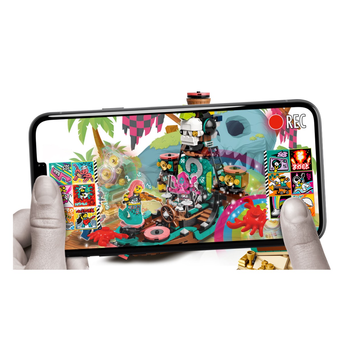 Ermögliche deinem Kind Zugang zur Welt der Musikvideo-Erstellung und lass sie mit dem LEGO® VIDIYO™ Punk Pirate Ship (43114) eigene Musikvideos drehen. Lade dafür die kostenlose VIDIYO App herunter, um die 3 Minifiguren zu scannen und tanzen zu lassen. Benutze dann die App, um das LEGO-Modell zu scannen. Jetzt wird das Schiff zur Bühne im Musikvideo deines Kindes. Kinder werden die kleinen Challenges beim Drehen ihrer eigenen Musikvideos lieben, die sie dann anderen „Musikvideoproduzenten“ in dem sicheren, sozialen Feed zeigen können.