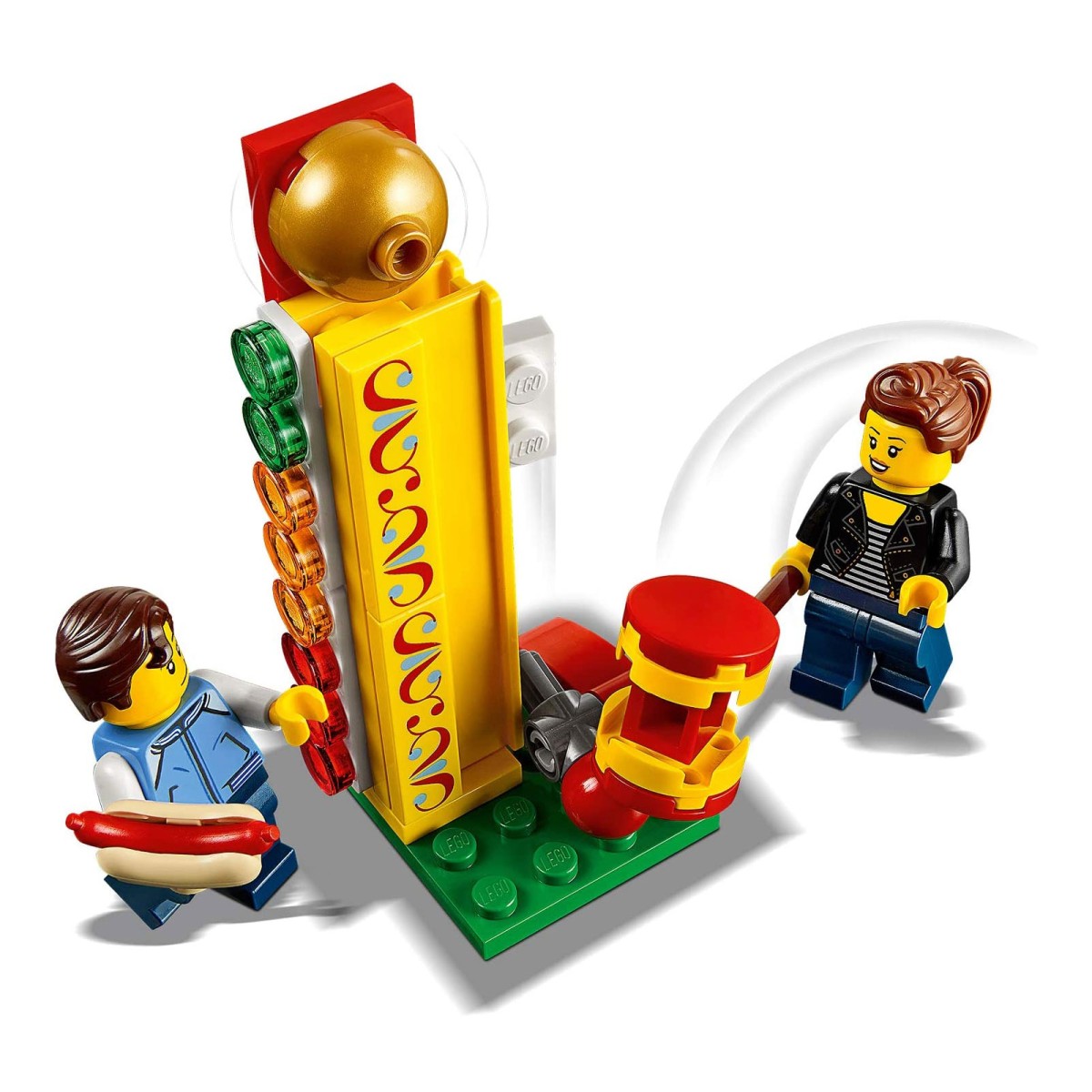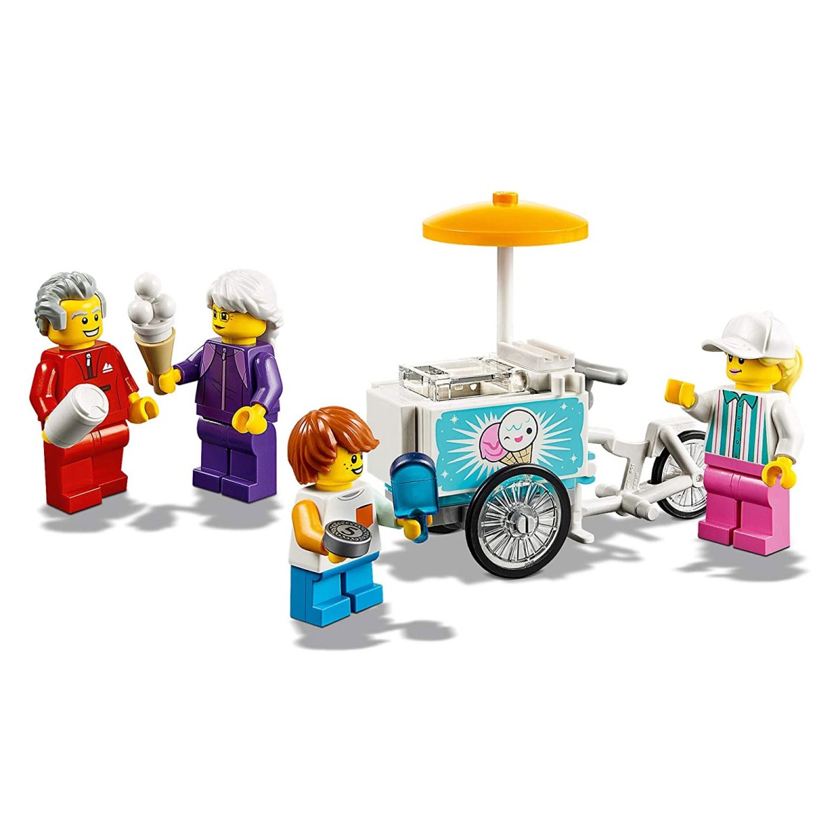 - Dieses Klemmbausteinset enthält ein Eiscreme-Fahrrad mit Schirm und Platz für eine Eistüte, ein Schießbudenspiel mit Noppen-Shooter, einen Kinderschminktisch, ein Ringwurfspiel mit Enten und einen Stärketest.