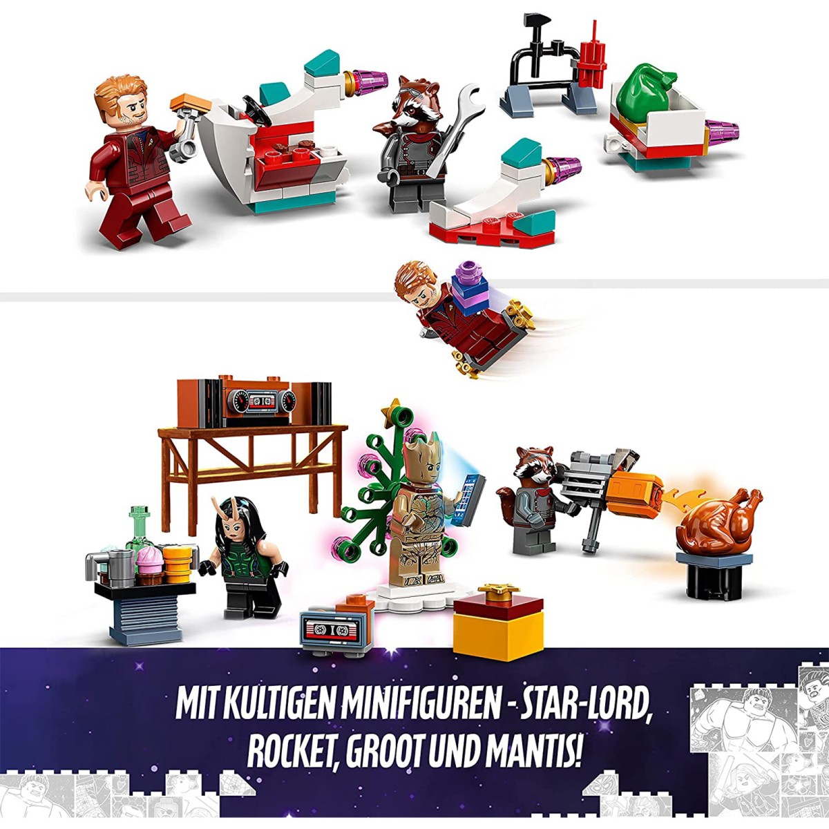 - Der Adventskalender 2022 von LEGO Marvel Guardians of the Galaxy enthält hinter jedem Türchen eine tolle Überraschung, die Kinder im Countdown bis Weihnachten täglich entdecken werden