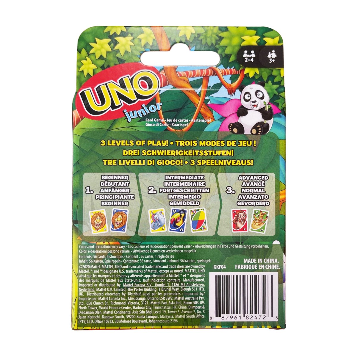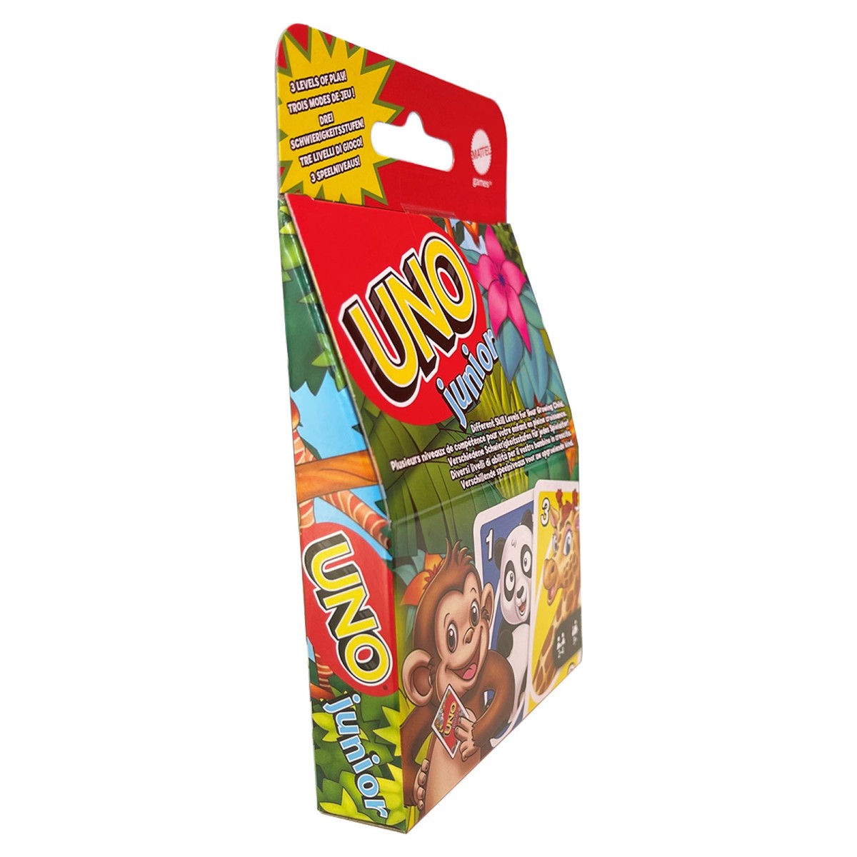 UNO Junior, das allseits beliebte Kartenspiel, für jüngere Kinder mit mehreren Spielebenen neu gestaltet, sodass Kinder mit dem Spiel wachsen können. Jede Spielebene bietet neue Herausforderungen, und bunte Tierbilder sprechen Kinder an und vereinfachen die Zuordnung.