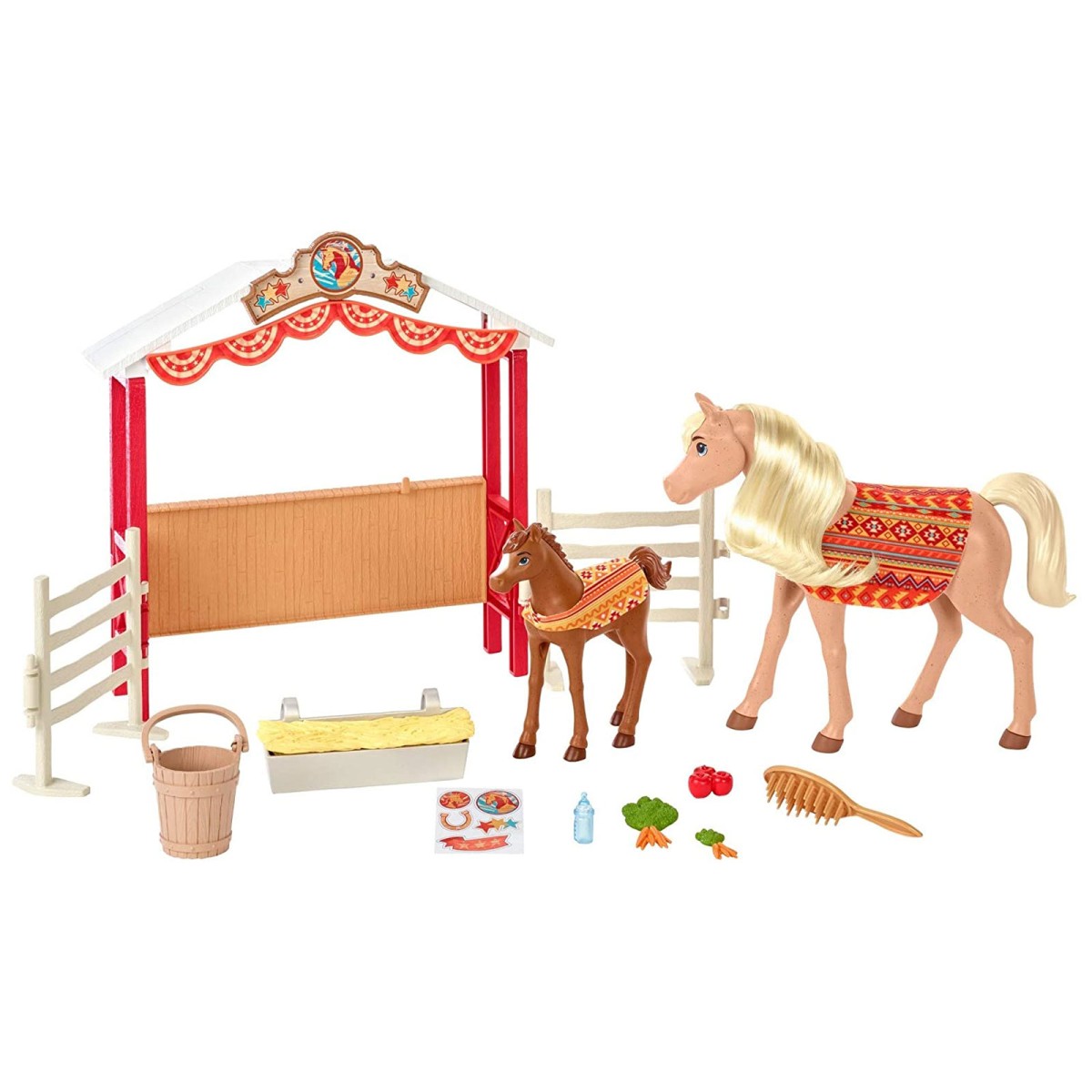 Produktinformationen "Mattel GXF53 - DreamWorks - Spirit - Spielset, 2 Pferde mit Zubehör, Stallfreunde"