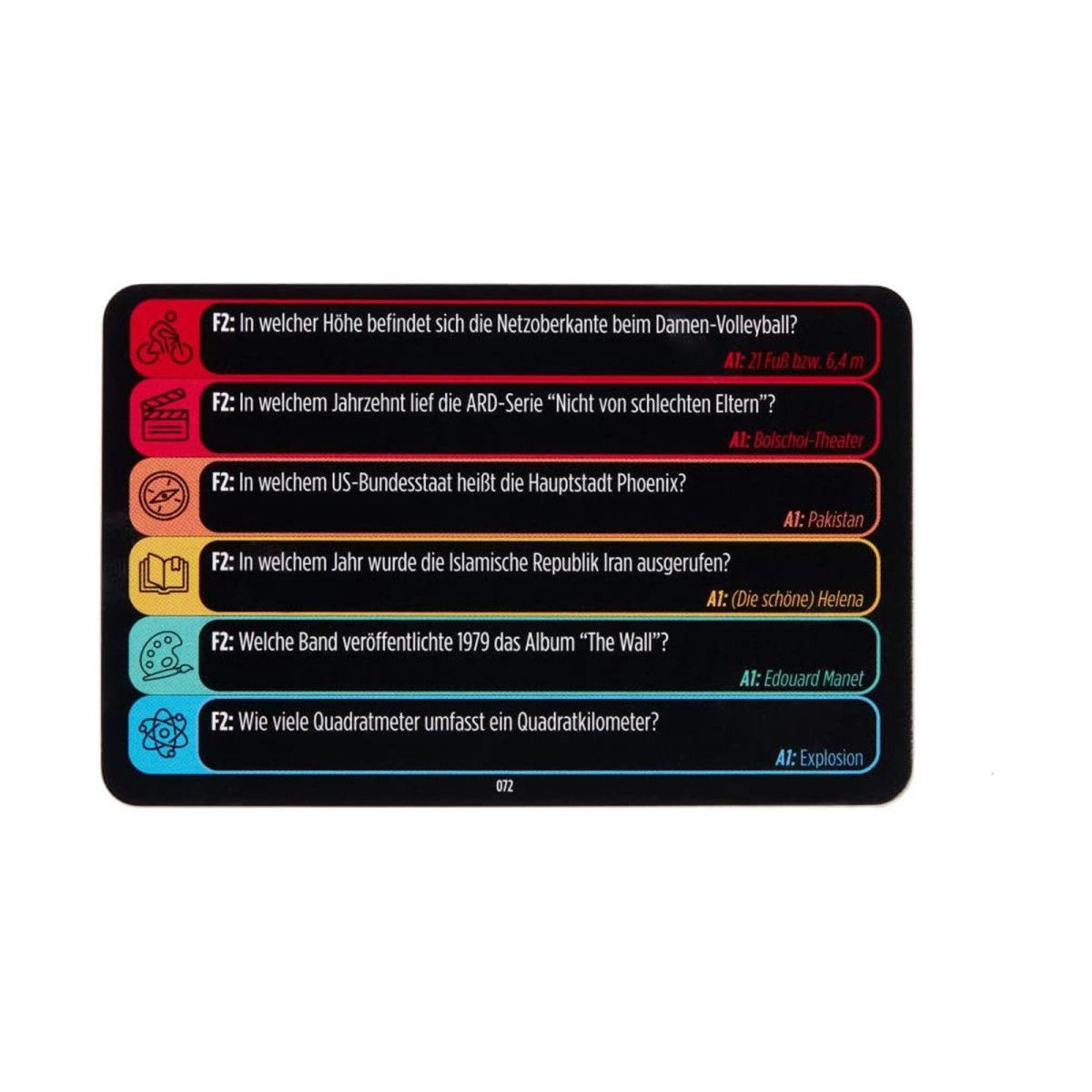 - Zu den Kategorien gehören: Geographie, Wisschenschaft, Geschichte, Sport, Kunst und Unterhaltung