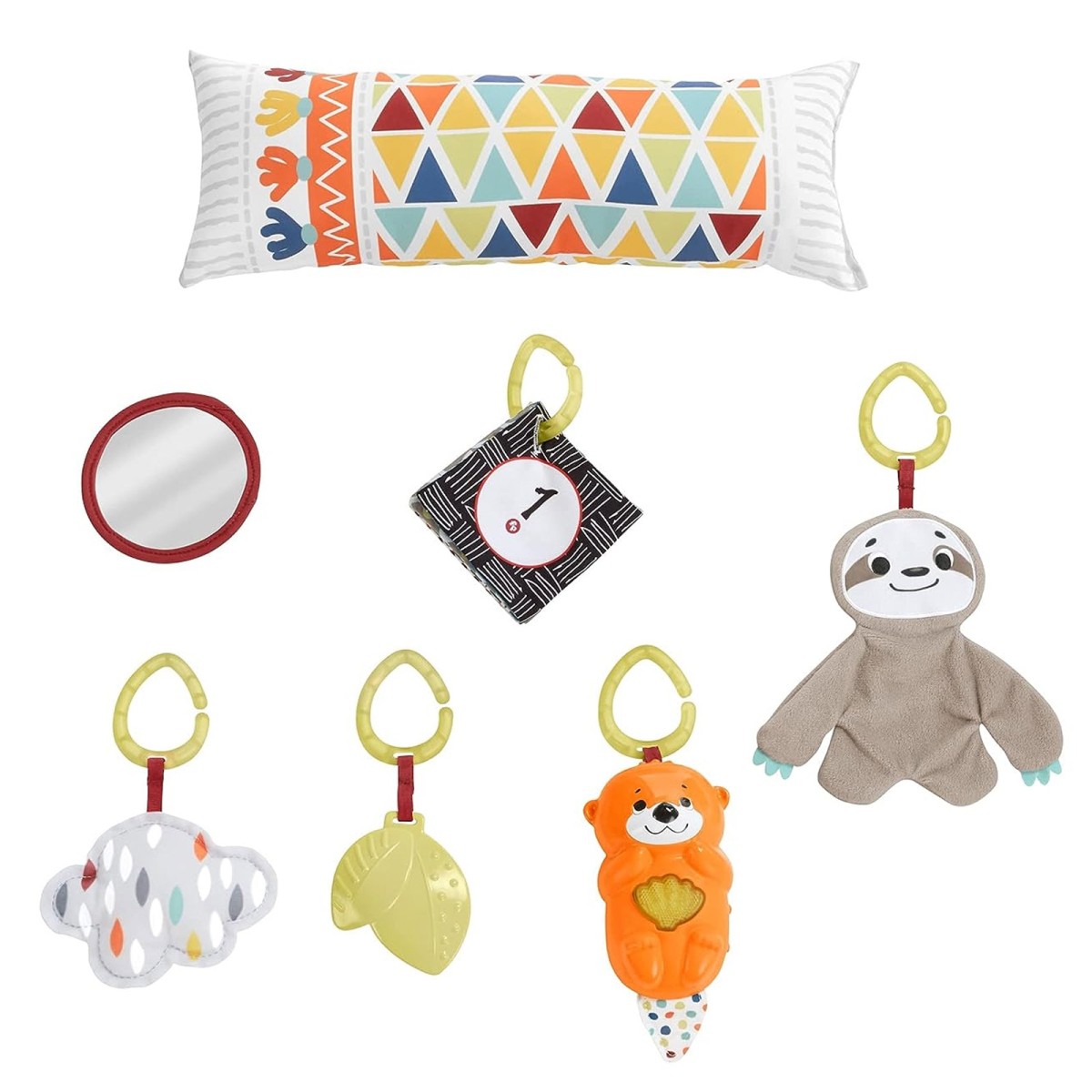 Die supergemütliche Spielmatte mit stützender Bauchzeitkeil ist der perfekte Ort für Ihren kleinen Entdecker, um auf ein sinnliches Abenteuer zu gehen. Von den Lichtern und der Musik des freundlichen Otters bis hin zum knautschigen Blattbeißring, dem kuscheligen Faultier-Kuscheltier, der duftenden Wolke und mehr – hier gibt es so viel für Ihr Baby zu entdecken auf diesem luxuriösen Babyspielgymnastikgerät.