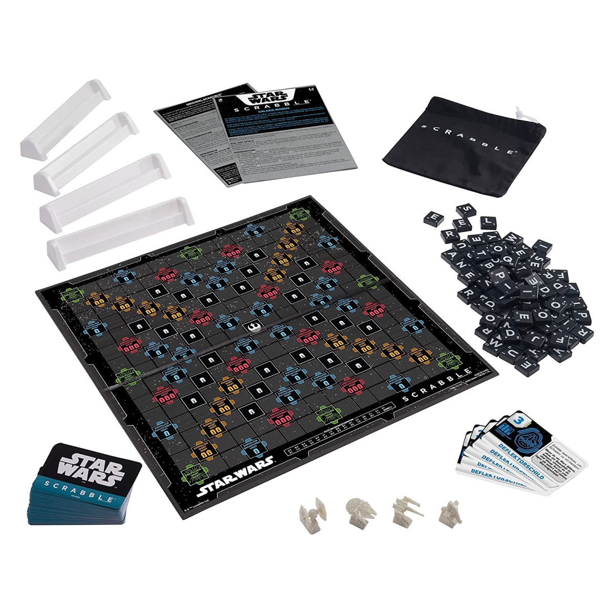 - Der Millennium Falke ist immer eine Wucht: In diesem Spiel ist er einer der Raumschiff-Spielsteine, die im Galaxie-Modus die Punktestände auf dem Spielbrett anzeigen. Scrabble ist jetzt in Lichtgeschwindigkeit unterwegs und hat sogar besondere Raumschiff-Spielsteine an Bord