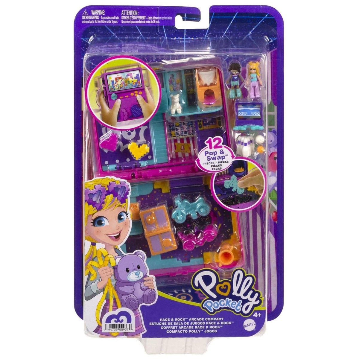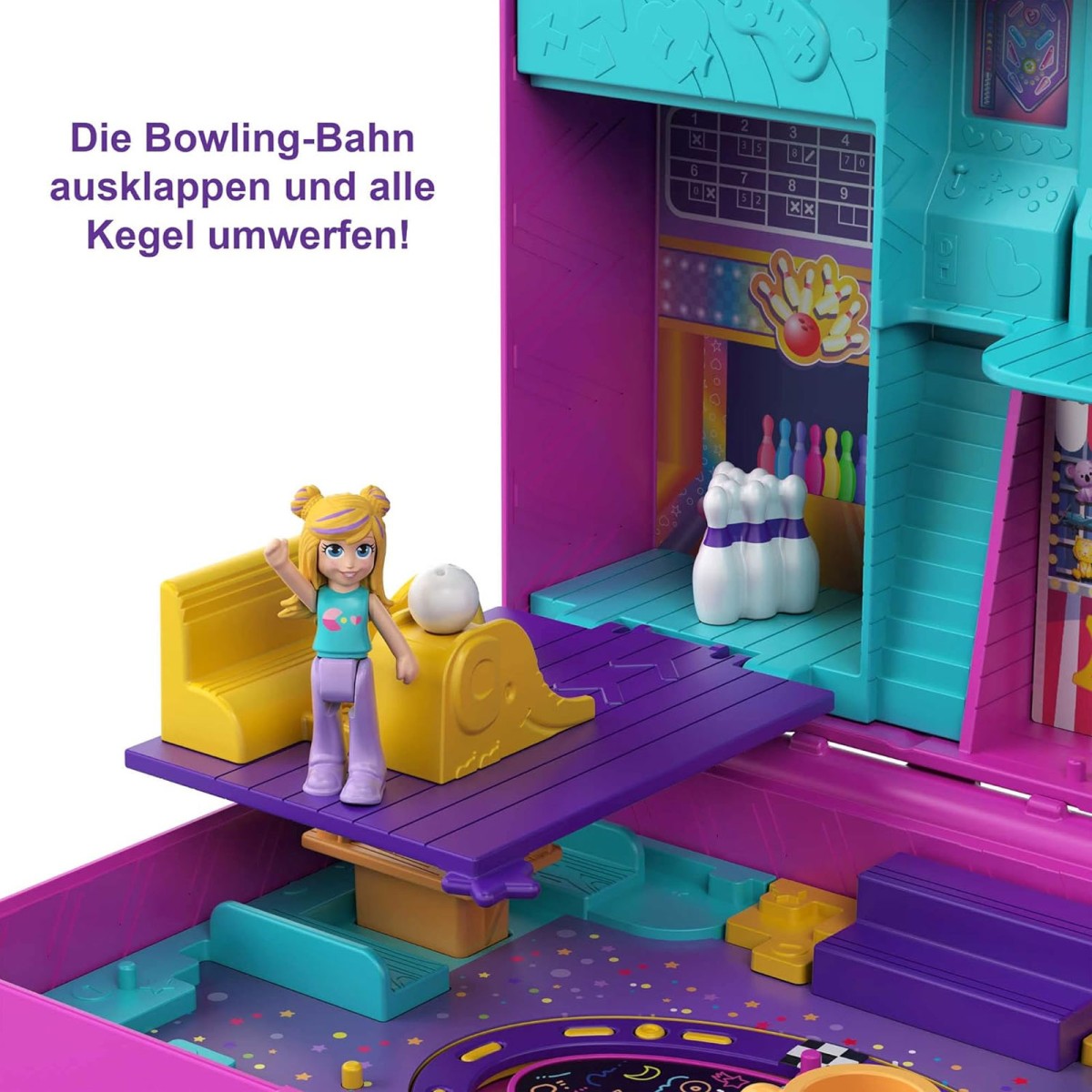 Erlebe spannende Abenteuer mit der Polly Pocket Spielparadies Schatulle im Videospiel-Design! Diese kompakte Schatulle im aufregenden Design bringt garantiert jede Menge Spielspaß – ob zu Hause oder unterwegs. Beim Schütteln funkelt das Fenster mit einem Glitzereffekt, während sich beim Öffnen ein faszinierendes Spielhallen-Abenteuer entfaltet. Die Schatulle enthält 5 Überraschungen und 12 Zubehörteile, darunter kleine Polly- und Shani-Puppen, die Kindern vielfältige Spielmöglichkeiten bieten.