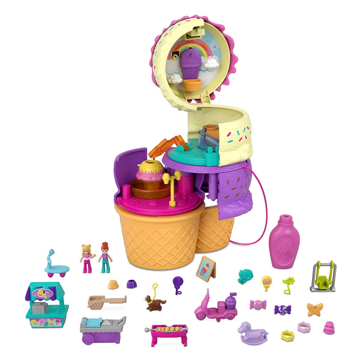 Produktinformationen "Mattel HFR00 - Polly Pocket - Spielset, 2 Mini-Puppen + 25 Überraschungen, Eiswaffel"
