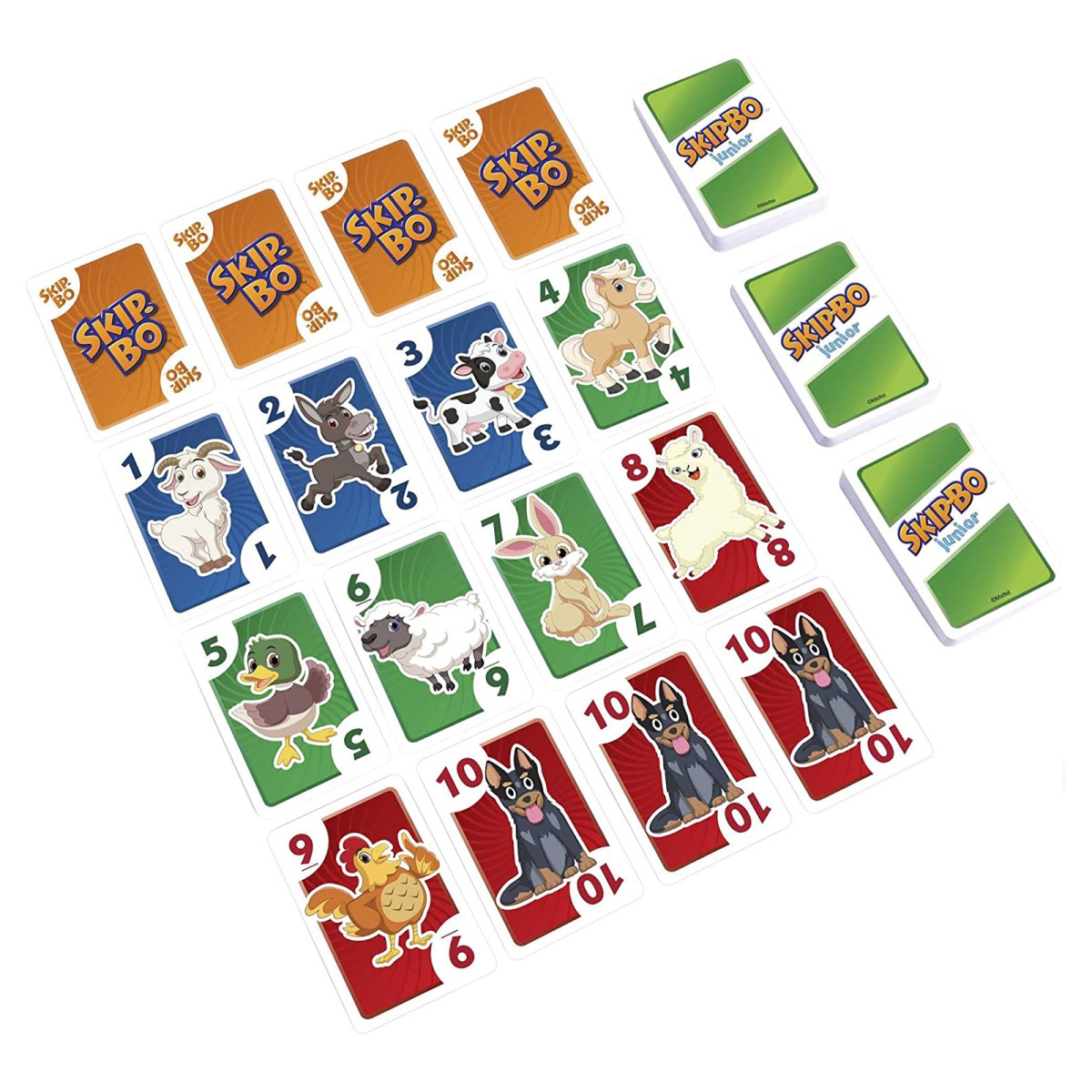 Das Kartenspiel Skip-Bo Junior ist das ultimative Reihenfolge-Kartenspiel von den Machern des Kartenspiels UNO. Es zeichnet sich durch einen vereinfachten Spielablauf und ein kindgerechtes Design mit bunten Farben und Tierbildern aus. Und diese Edition bietet sogar 2 Spielniveaus!