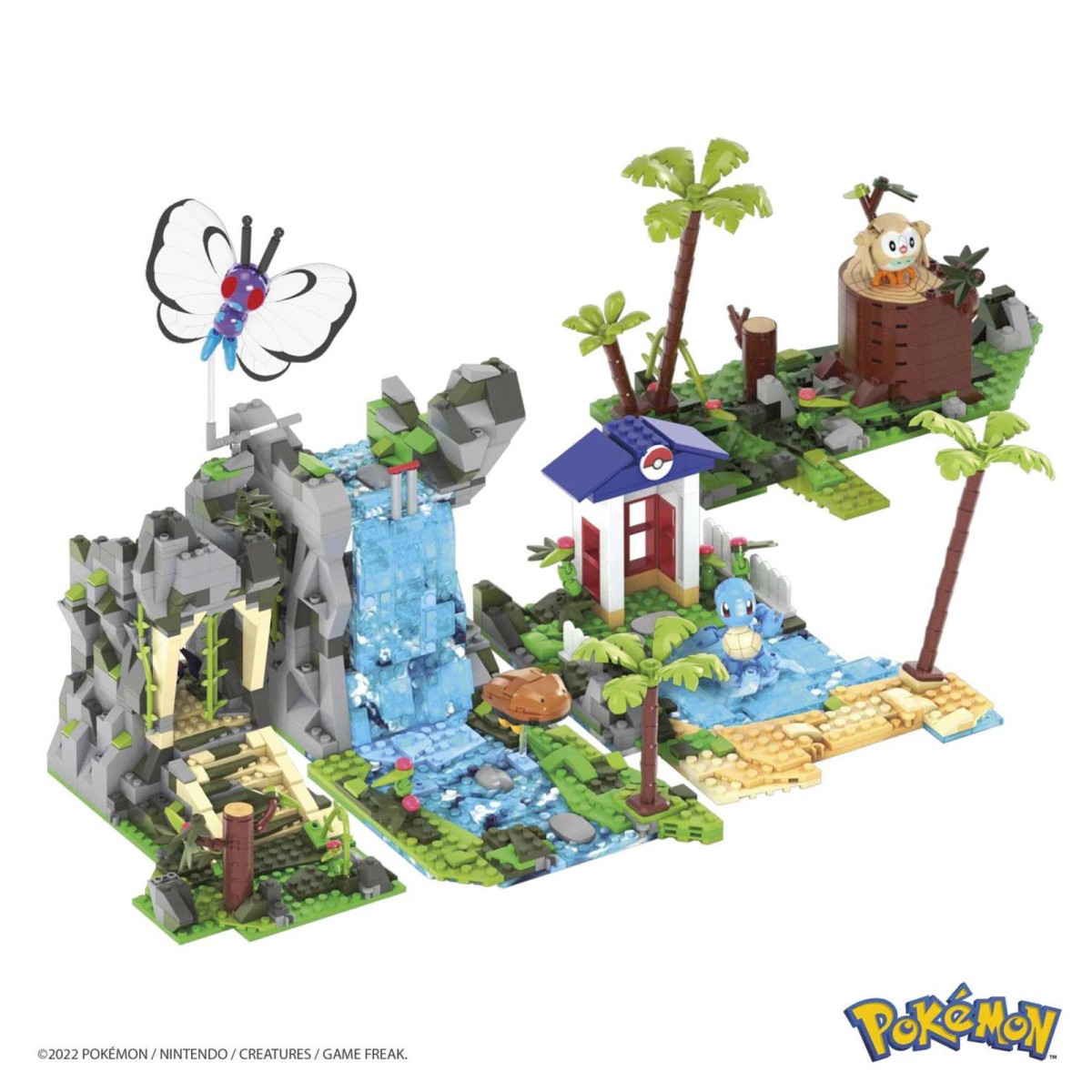 Aus den Teilen entstehen eine Höhle im Regenwald, ein Berg mit Wasserfall, ein Tor zu uralten Ruinen, ein See mit einem kleinen Strand und ein Wald. Smettbo, Schiggy, Kabuto und Bauz können zusammengesetzt werden, um Abenteurer auf ihren Expeditionen zu begleiten. Jeder Bereich bietet spezielle und einzigartige Spielelemente. Wer die Gegend gründlich durchstreift, entdeckt möglicherweise einen versteckten Superball! Diese Welt kann mit anderen Sets aus der Abenteuerbauset-Reihe (separat erhältlich) erweitert werden.