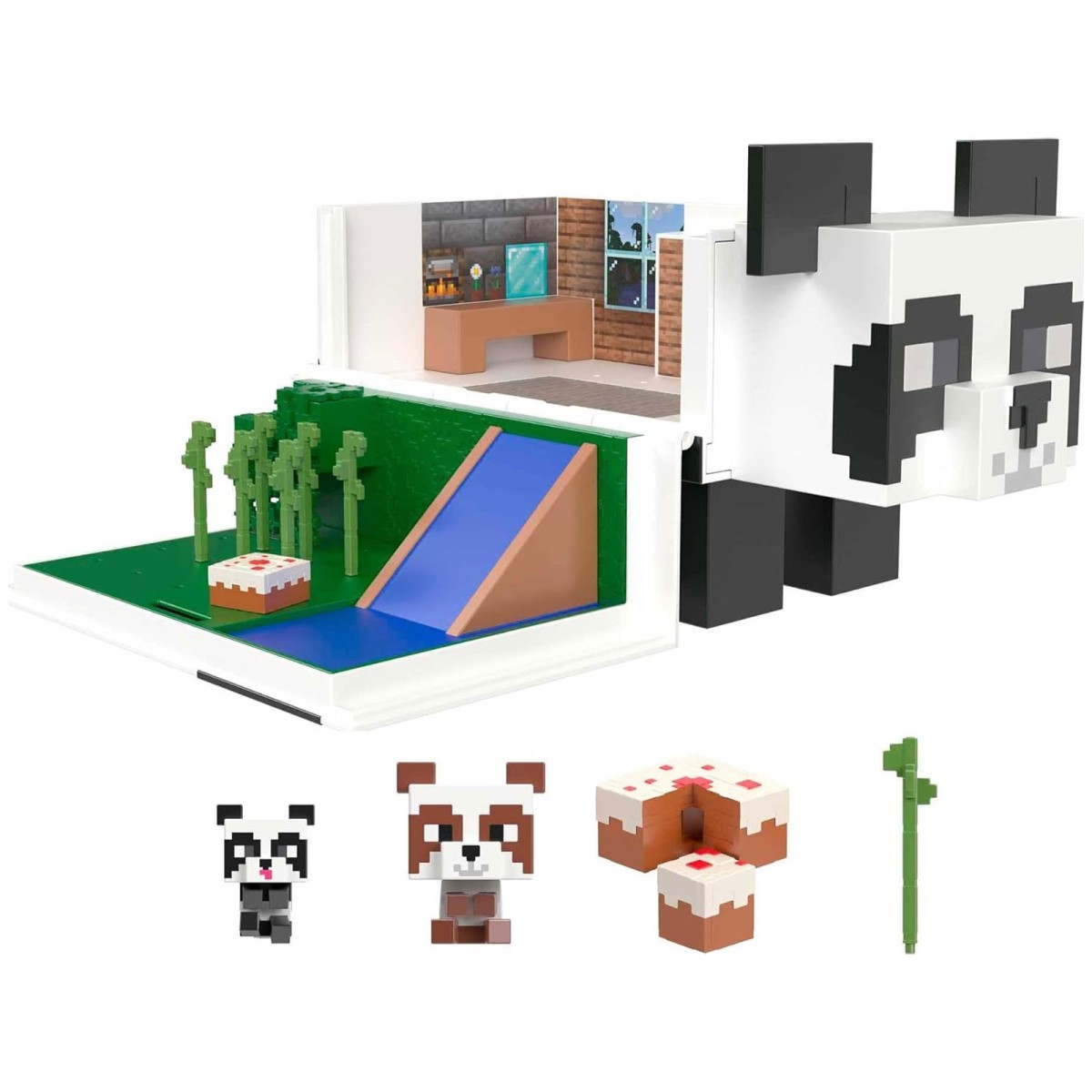Erwecke die Welt von Minecraft zum Leben mit dem Panda Spielhaus Spielset von Mattel! Dieses detailgetreue Set im typischen pixeligen Design bietet Fans die Möglichkeit, ihre liebsten Momente aus dem Spiel nachzuspielen. Der riesige Panda verwandelt sich durch einfaches Aufklappen in ein vollständiges Spielhaus mit Innen- und Außenbereichen, perfekt für Mob Head-Minifiguren (2 inklusive). Mit Rutschen, einem Bambuswald und weiteren Spielbereichen wird jedes Minecraft-Abenteuer real! Erlebe eine Panda-Party oder stelle Geschichten aus dem Spiel nach – Minecraft-Fans werden es lieben!