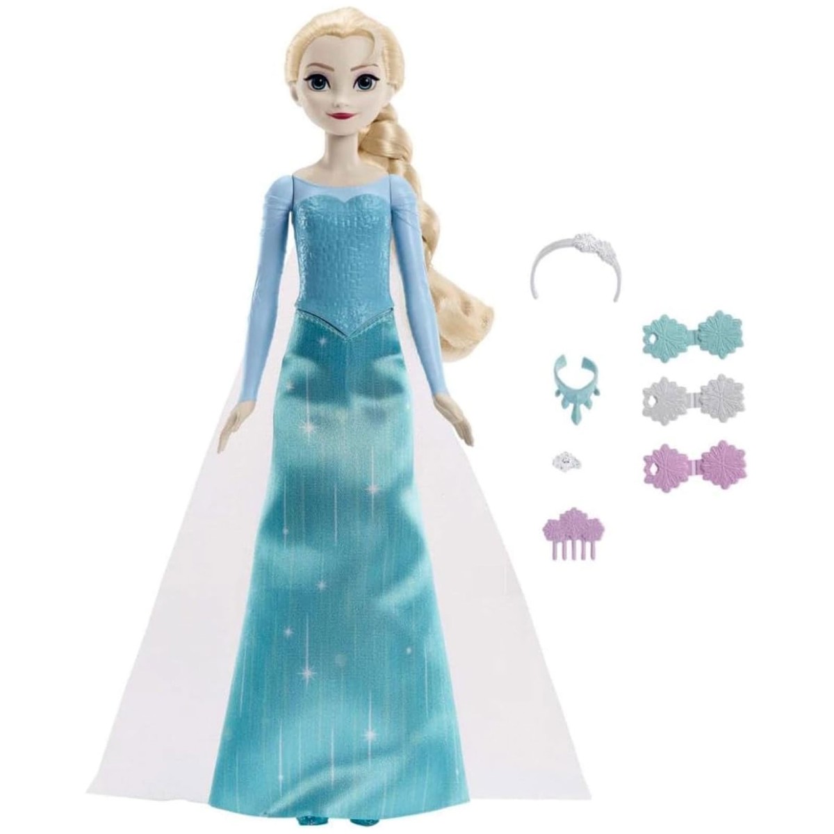Begleite Königin Elsa auf ihrer Reise, bei der sie ihr wahres Ich entdeckt. Dieses bezaubernde Spielset bringt die Magie von Arendelle direkt ins Kinderzimmer. Enthalten ist eine wunderschöne Elsa-Puppe sowie 10 elegante Zubehörteile wie Haarspangen, ein Diadem, ein Armreif und eine Halskette.