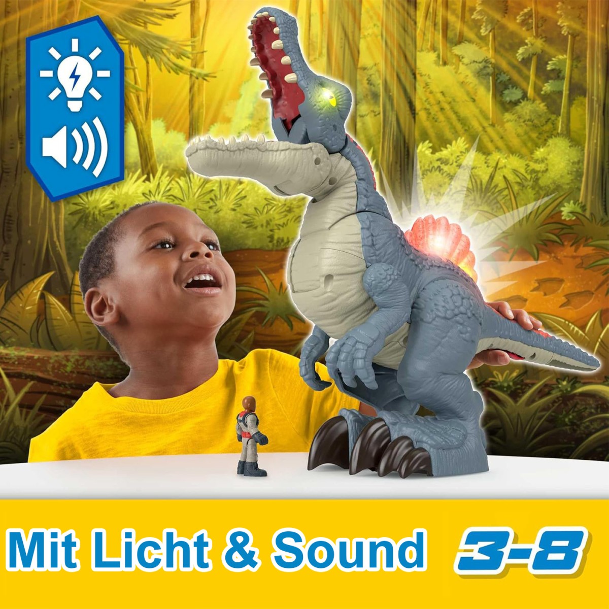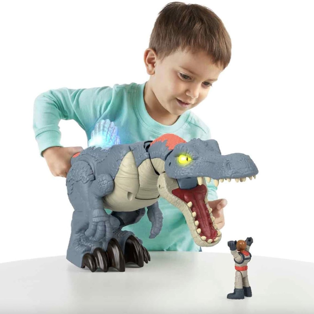 - Die Kinder erschaffen sich ihre eigenen aufregenden Jurassic World-Geschichten mit diesem 20 cm großen, zuschnappenden Spinosaurus und der dazugehörigen Figur