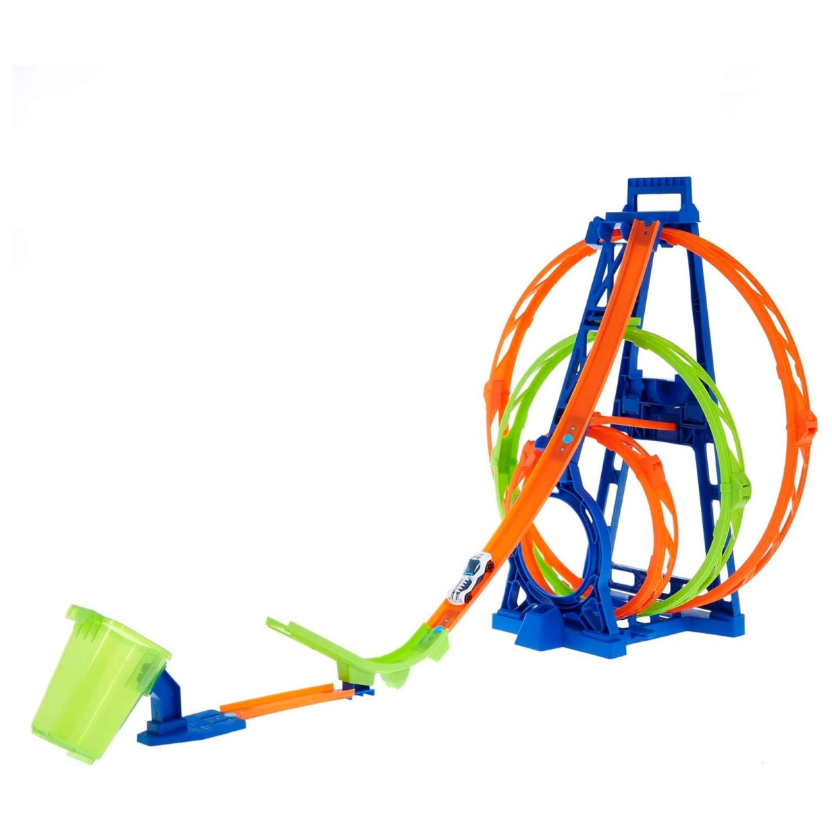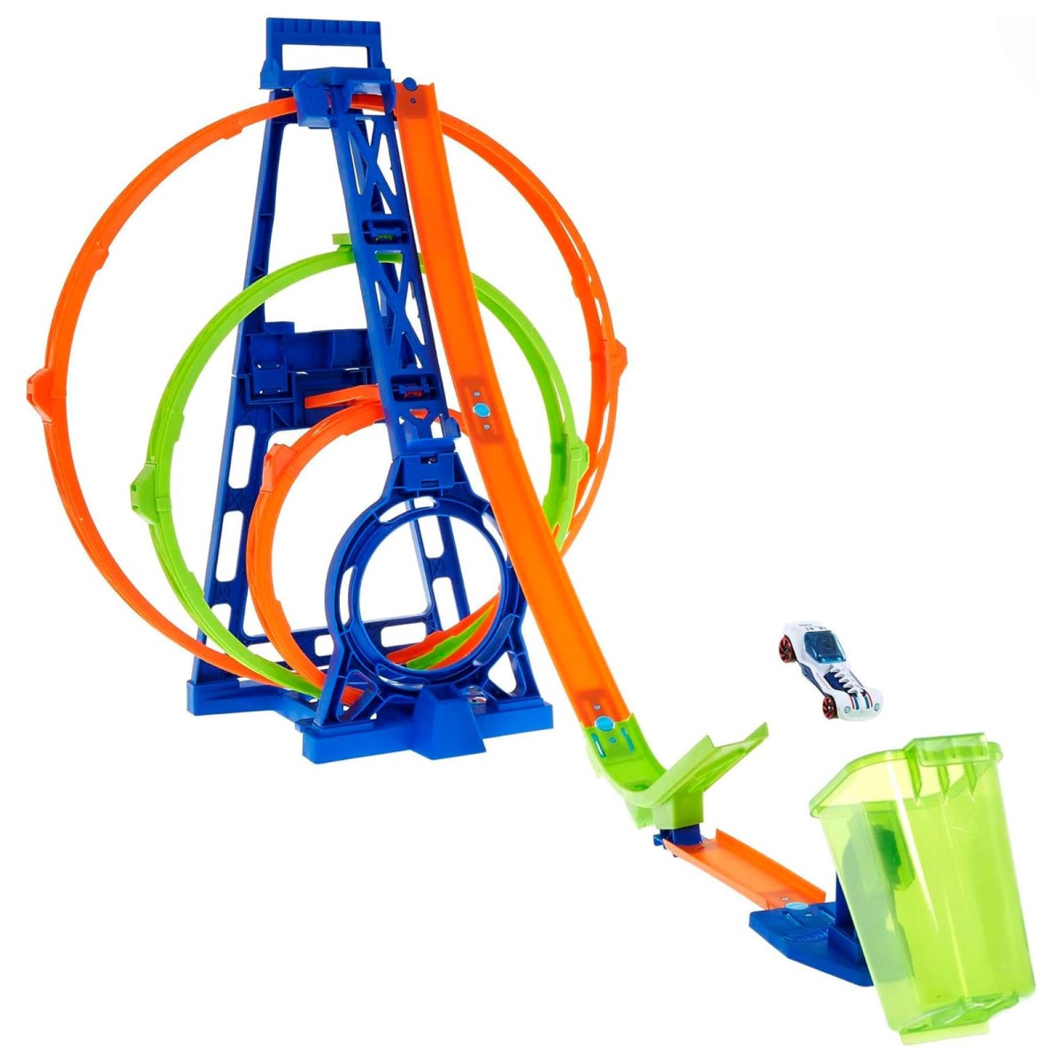 Dieses Hot Wheels-Set bietet atemberaubende dreifache Looping-Stunts für ultimativen Nervenkitzel. Es ist kompatibel mit anderen Hot Wheels-Sets (separat erhältlich) und lässt sich für eine einfache Lagerung & Transport zusammenklappen. Ein Hot Wheels-Fahrzeug im Maßstab 1:64 ist bereits enthalten – der Rennspaß kann sofort beginnen!
