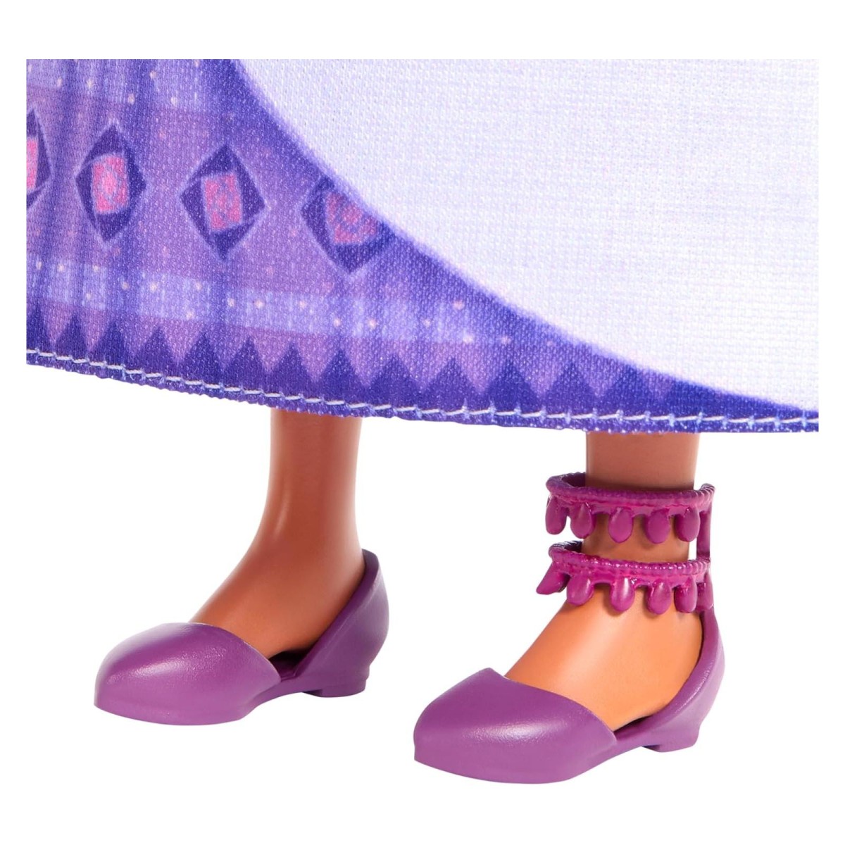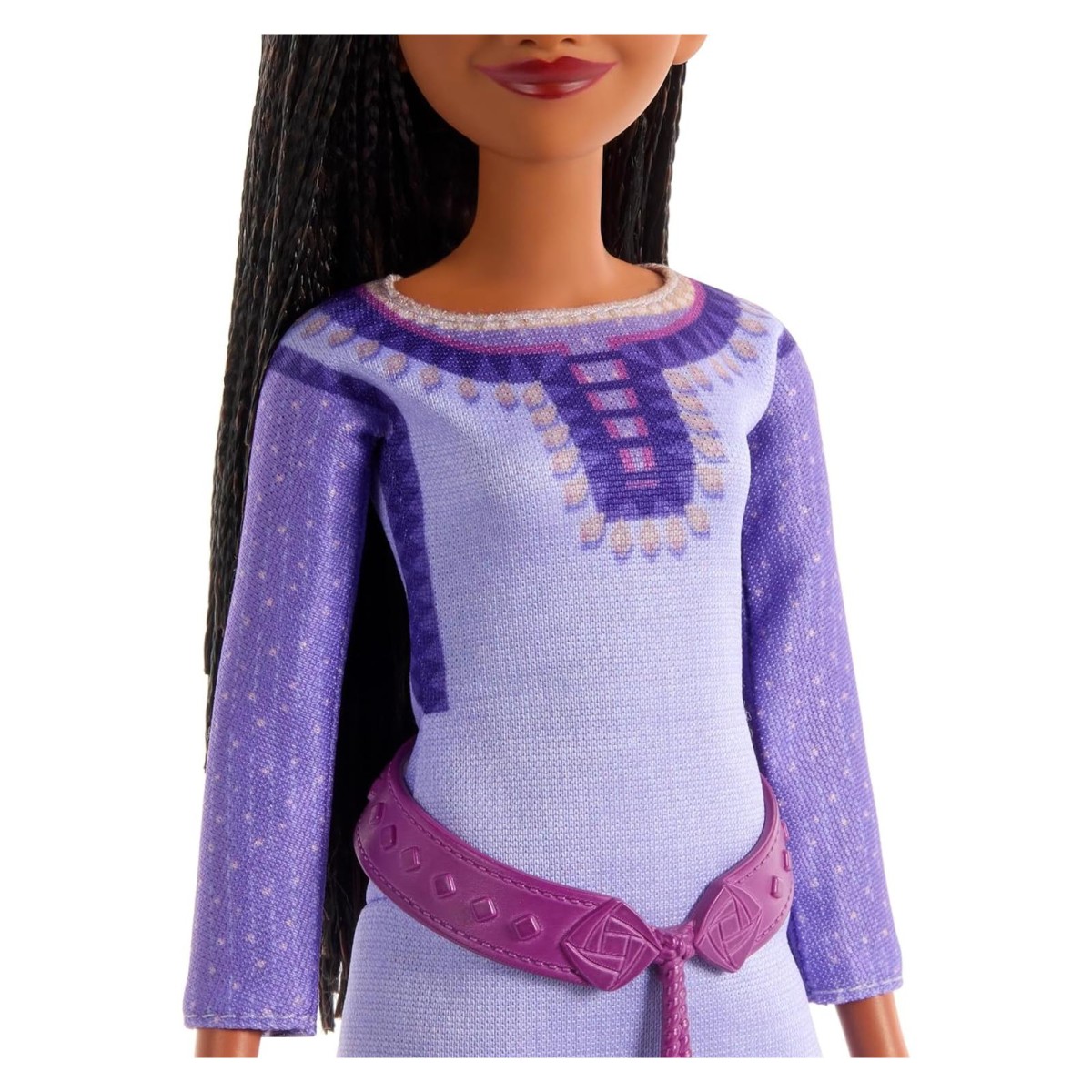 - Die Modepuppe präsentiert den typischen Look von Asha mit ihrem ausziehbaren Kleid, Gürtel und Schuhen, inspiriert von den Details aus dem Film.
