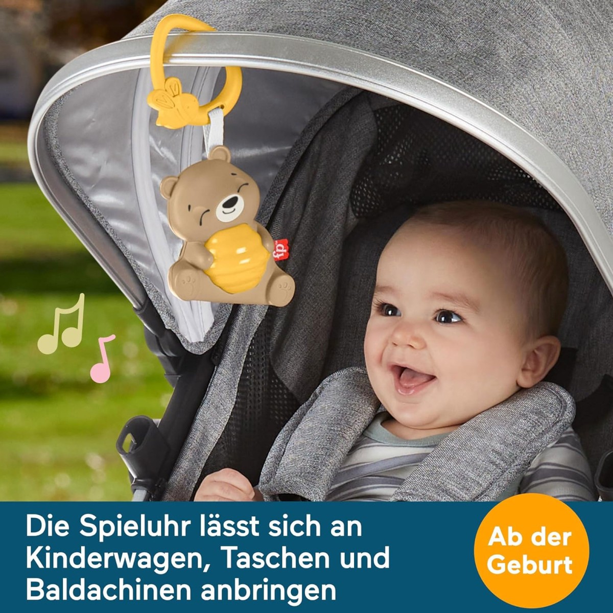 Die bezaubernd beruhigende Schlummer-Bärchen Spieluhr von Fisher-Price bietet über 18 Stunden entspannende Klänge und Musik, um dein Baby Tag und Nacht zu begleiten. Mit einem sanft leuchtenden Nachtlicht und einem schnell aufladbaren Akku ist dieses tragbare Klanggerät ideal für zu Hause und unterwegs. Der Timer lässt sich auf 30 oder 60 Minuten oder auf dauerhafte Wiedergabe einstellen – perfekt abgestimmt auf die Bedürfnisse deines Neugeborenen. Dank der praktischen Befestigungsschlaufe kann das Gerät mühelos am Kinderwagen, der Wickeltasche oder dem Verdeck angebracht werden – für Beruhigung überall.