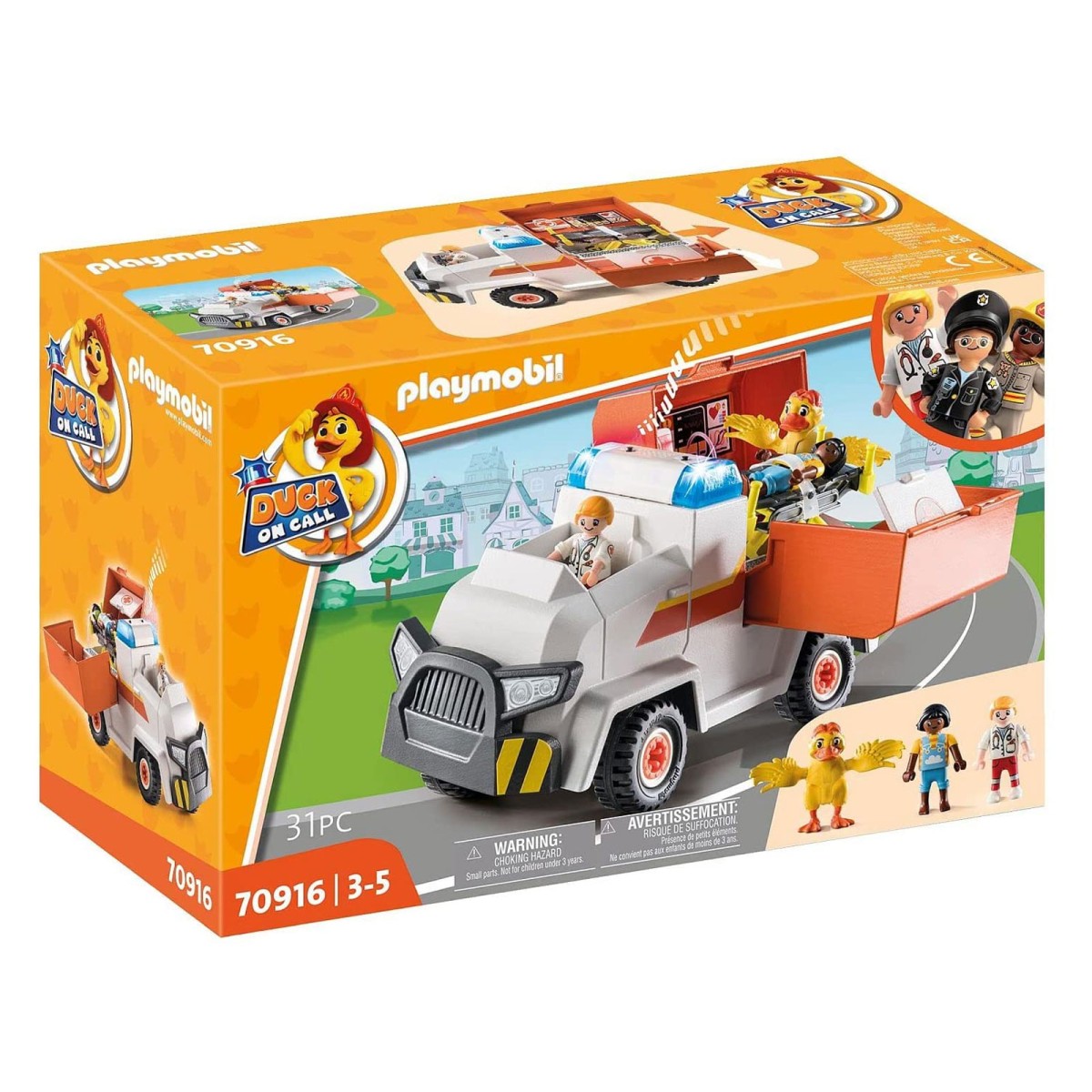 Mit dem abenteuerlichen Spielzeug von DUCK ON CALL macht PLAYMOBIL den Einstieg in seine Spielwelten kinderleicht: Ob Feuerwehr, Polizei oder Notarzt - die Helden von DUCK ON CALL sind stets zur Stelle, wenn in Playmoville Hilfe benötigt wird. Begleitet werden PLAYMOBIL-Feuerwehrmann Freddy Fire, PLAYMOBIL-Polizistin Polly Police und PLAYMOBIL-Notarzt Mikey Medic von ihrem tierischen Helfer, Enten-Figur Ducklas: