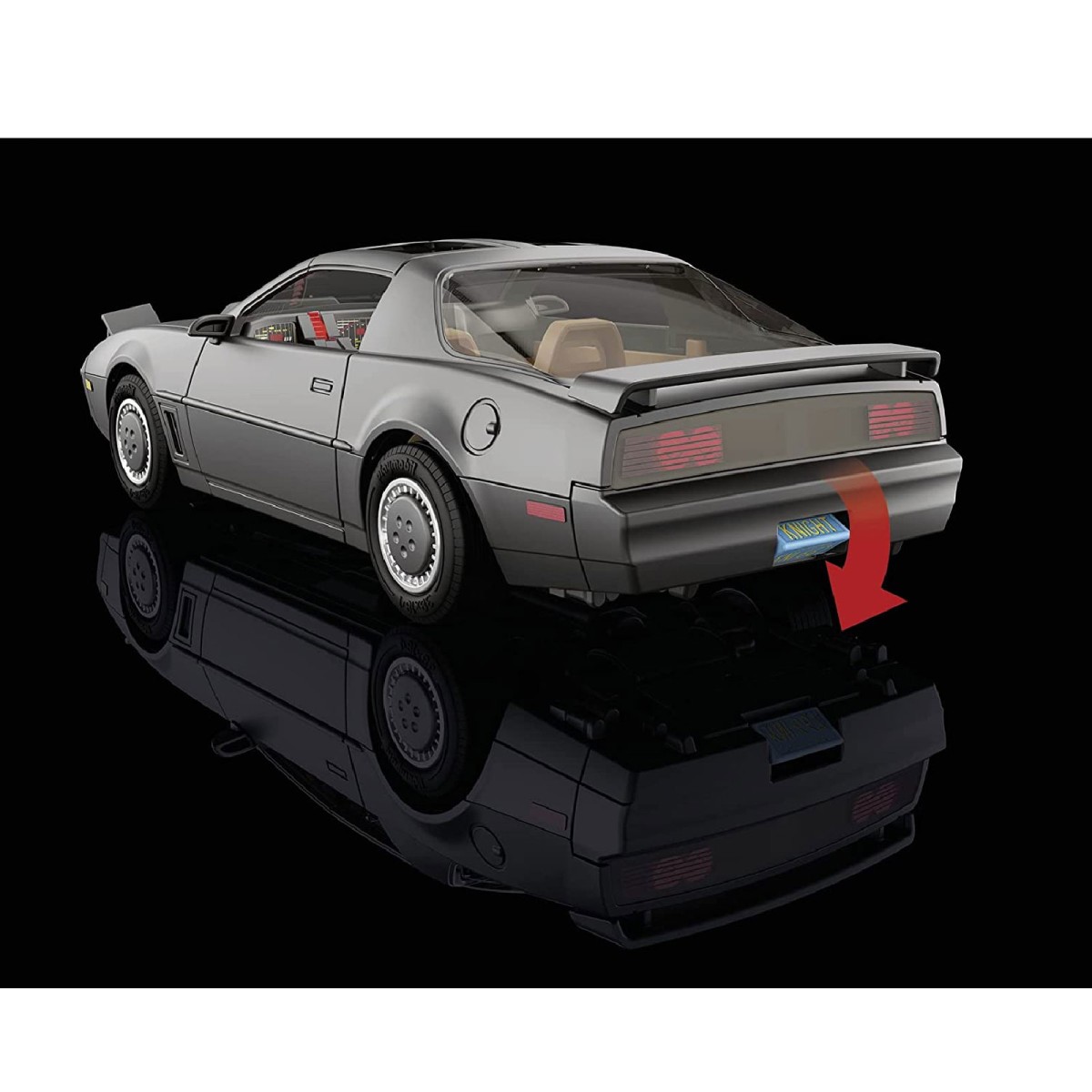 K.I.T.T. wäre nicht K.I.T.T. ohne seine weiteren ausgeklügelten Funktionen. So verfügt das Spielzeugauto über ein rotierendes Nummernschild hinten, sodass man durch Drehen zwischen „KNIGHT“ und „KNI 667“ wählen kann. Die Frontscheinwerfer des Autos lassen sich außerdem einzeln nach oben klappen und unter dem Fahrgestell hinten in der Mitte kann mit Hilfe des Adapters die Schnur mit Enterhaken befestigt werden.
