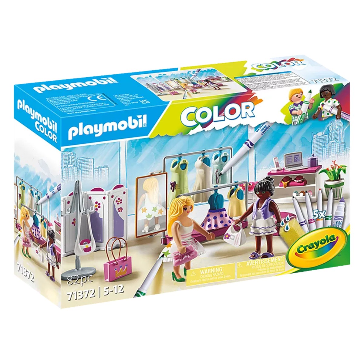 Die individuell gestaltbaren Sets von PLAYMOBIL Color fördern spielerisch die Kreativität und Feinmotorik kleiner DIY-Fans. Die Fashionboutique lädt zum Einkaufsbummel ein. Dort gibt es verschiedene Trends zum Entdecken und Anprobieren. In der Umkleidekabine können die gestalteten Figuren immer wieder neu eingekleidet und Wechselkleider, Taschen und Accessoires untereinander kombiniert werden.